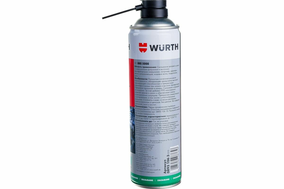 Спрей смазка 500 мл HS5000 Wurth-Не содержит силикона, смол и кислот-Содержит твердую смазку — PTFE интересное: