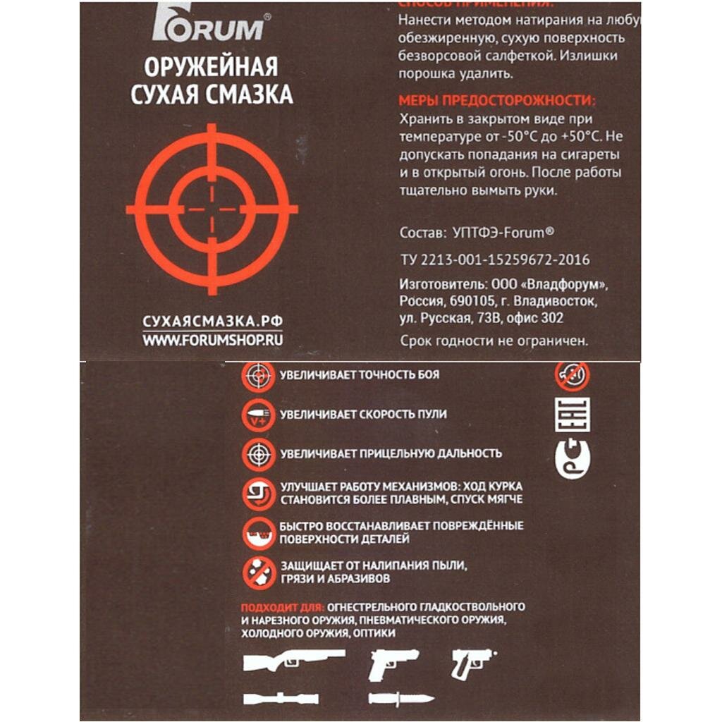 Смазка сухая оружейная Forum (Форум) PTFE интересное: