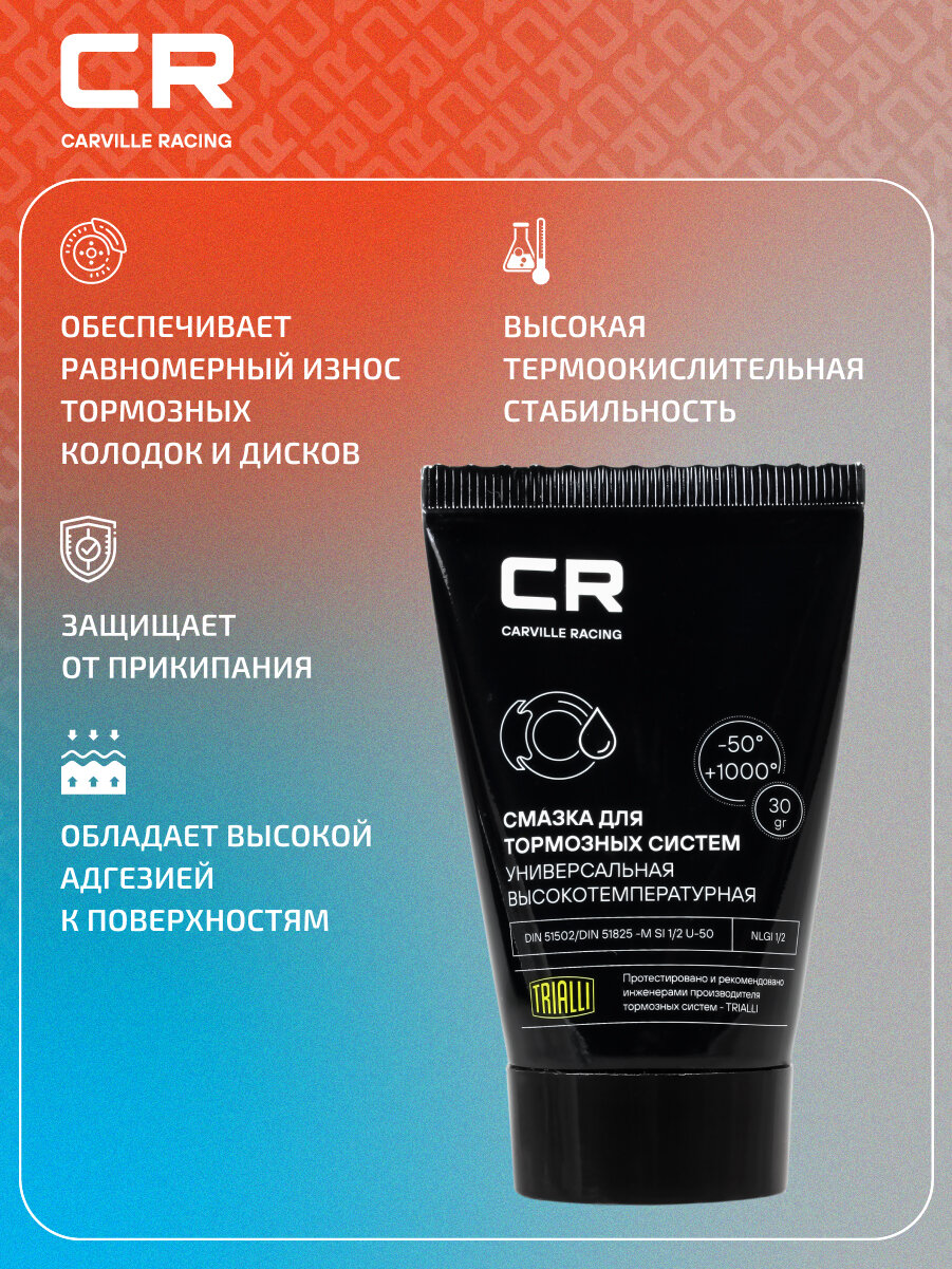Смазка для тормозных систем высокотемпературная, туба, 30 г G5150254 Carville Racing интересное:
