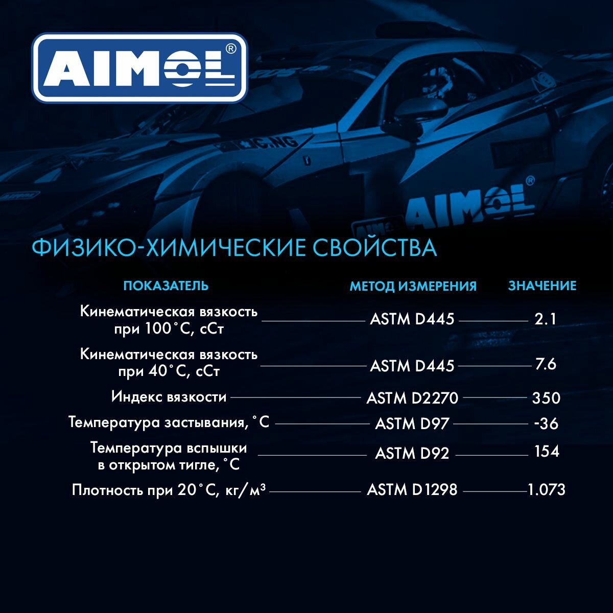 | Кинематическая вязкость при 100°С | 2.1 мм2/с |