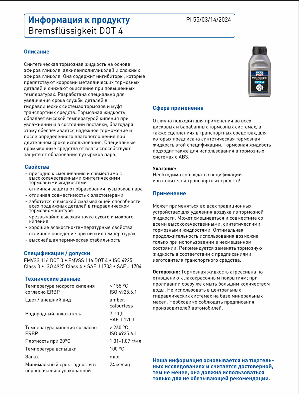 Ниже Вы можете прочитать отзывы на Жидкость тормозная Liqui Moly "Bremsenflussigkeit DOT-4", 0.5 л, ознакомится с подробными характеристиками, посмотреть интересные обзоры и фотографии на Жидкость тормозная Liqui Moly "Bremsenflussigkeit DOT-4", 0.5 л.