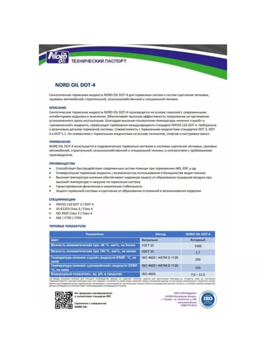 Тормозная жидкость NORD OIL DOT-4 900ml интересное: