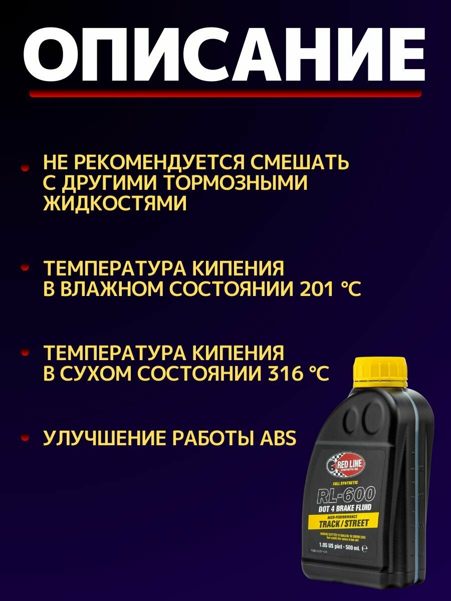 Жидкость тормозная DOT-4 RL600, 500 мл 90404 REDLINE США интересное: