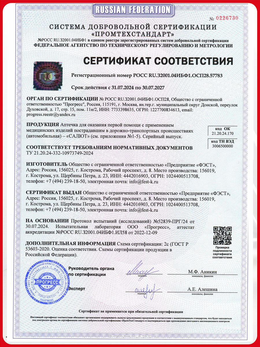 ФЭСТ Аптечка автомобильная нового образца САЛЮТ ГОСТ 2025 приказ 260н