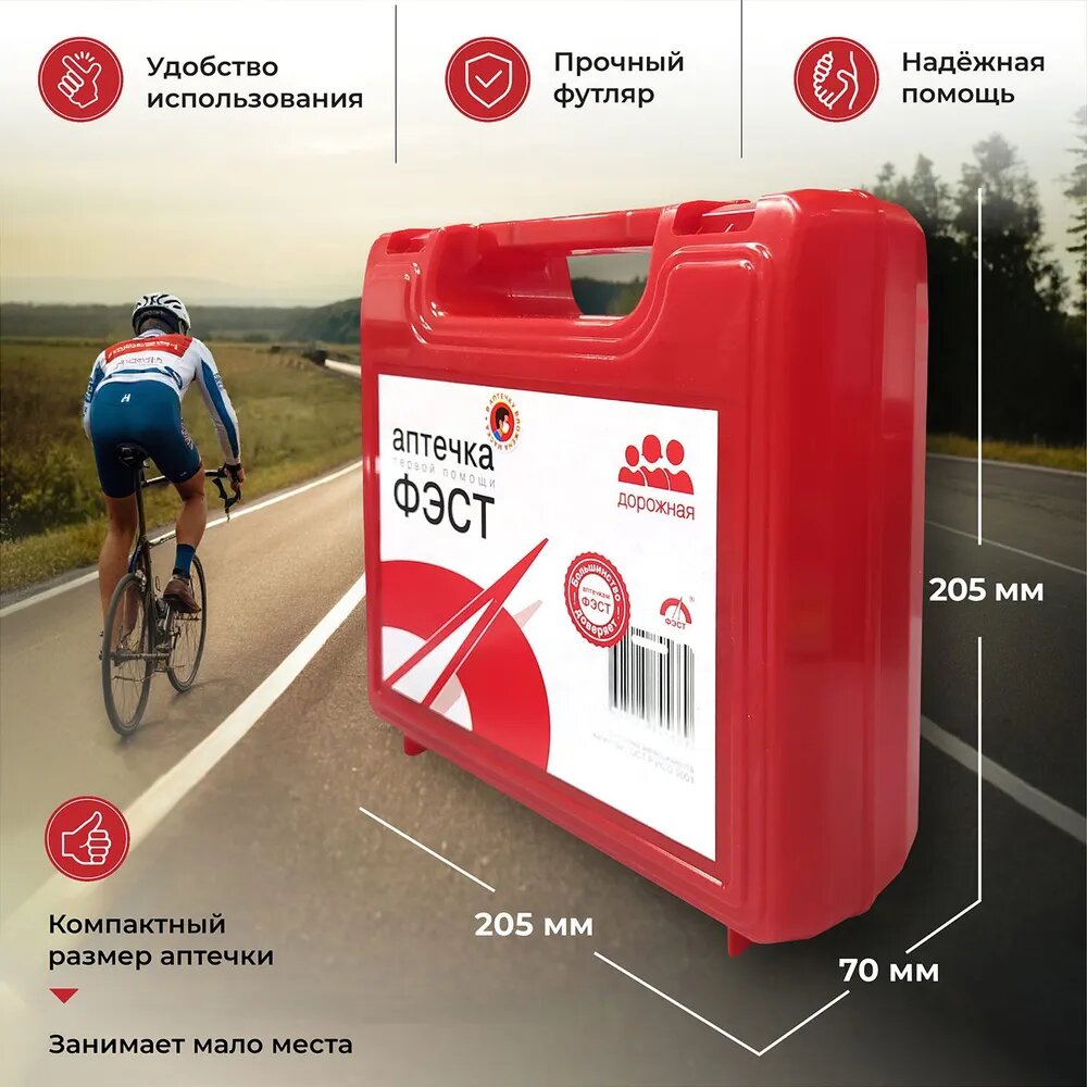 Аптечка ФЭСТ дорожная, автомобильная, для мотоциклов, велосипедов, первая помощь, влагозащищенная интересное: