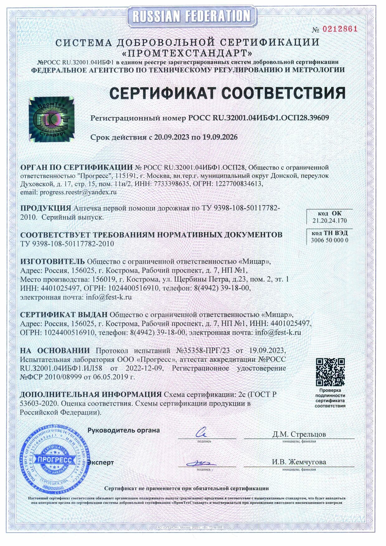 Аптечка автомобильная ФЭСТ футляр из полистирола, новый состав по приказу № 1080Н от 08.10.20
