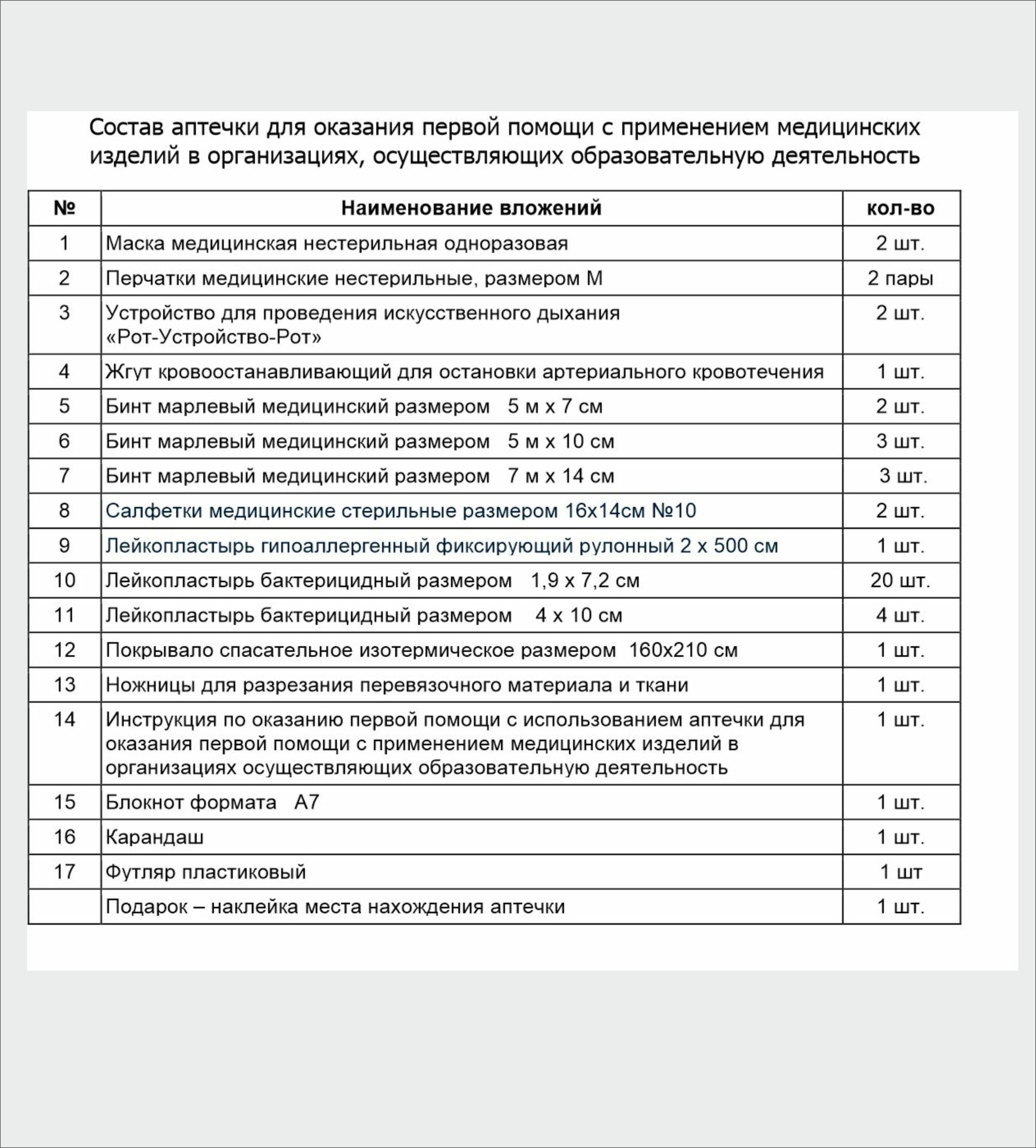 Аптечка для образовательных учреждений 2025, по новому приказу №261н интересное: