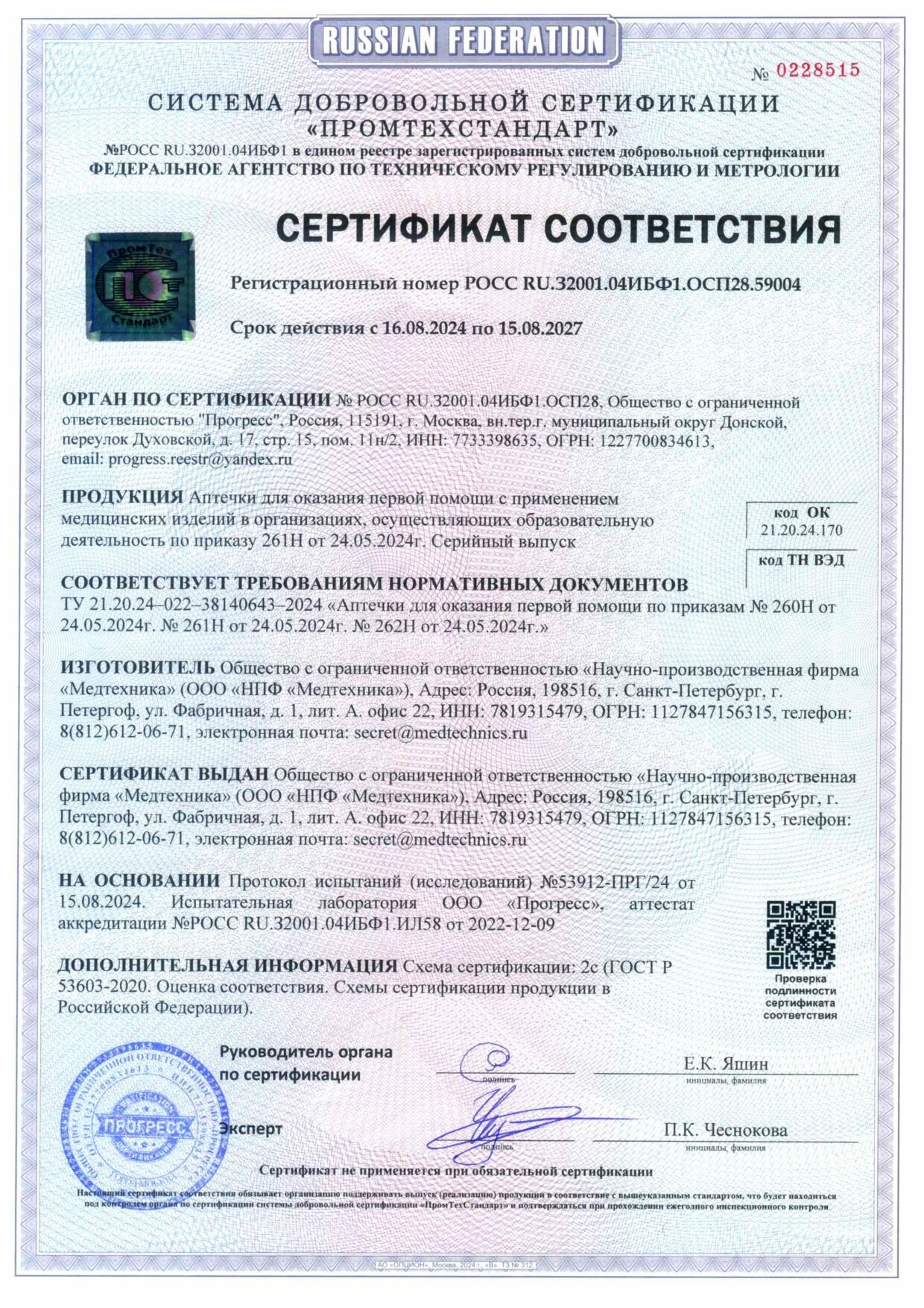 Купить Аптечка для образовательных учреждений 2025, по новому приказу №261н