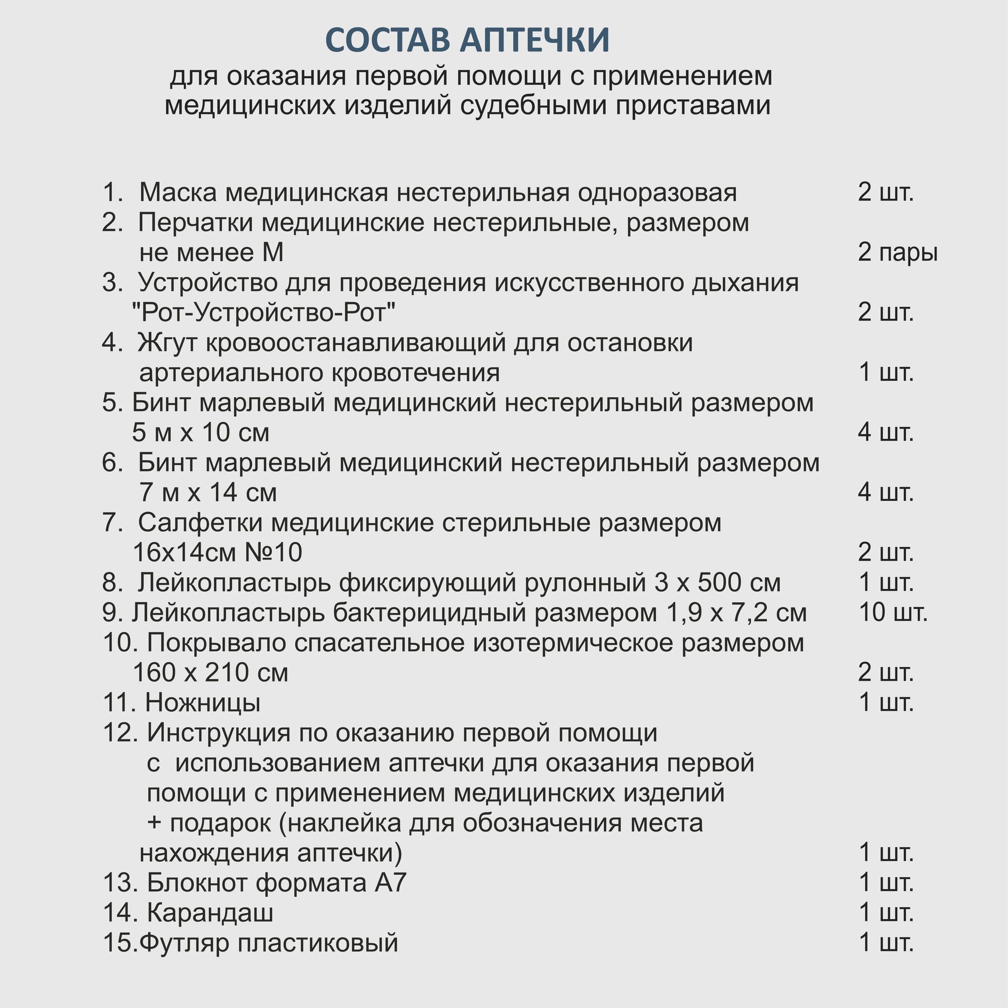 Аптечка по новому приказу 208-н для судебных приставов интересное: