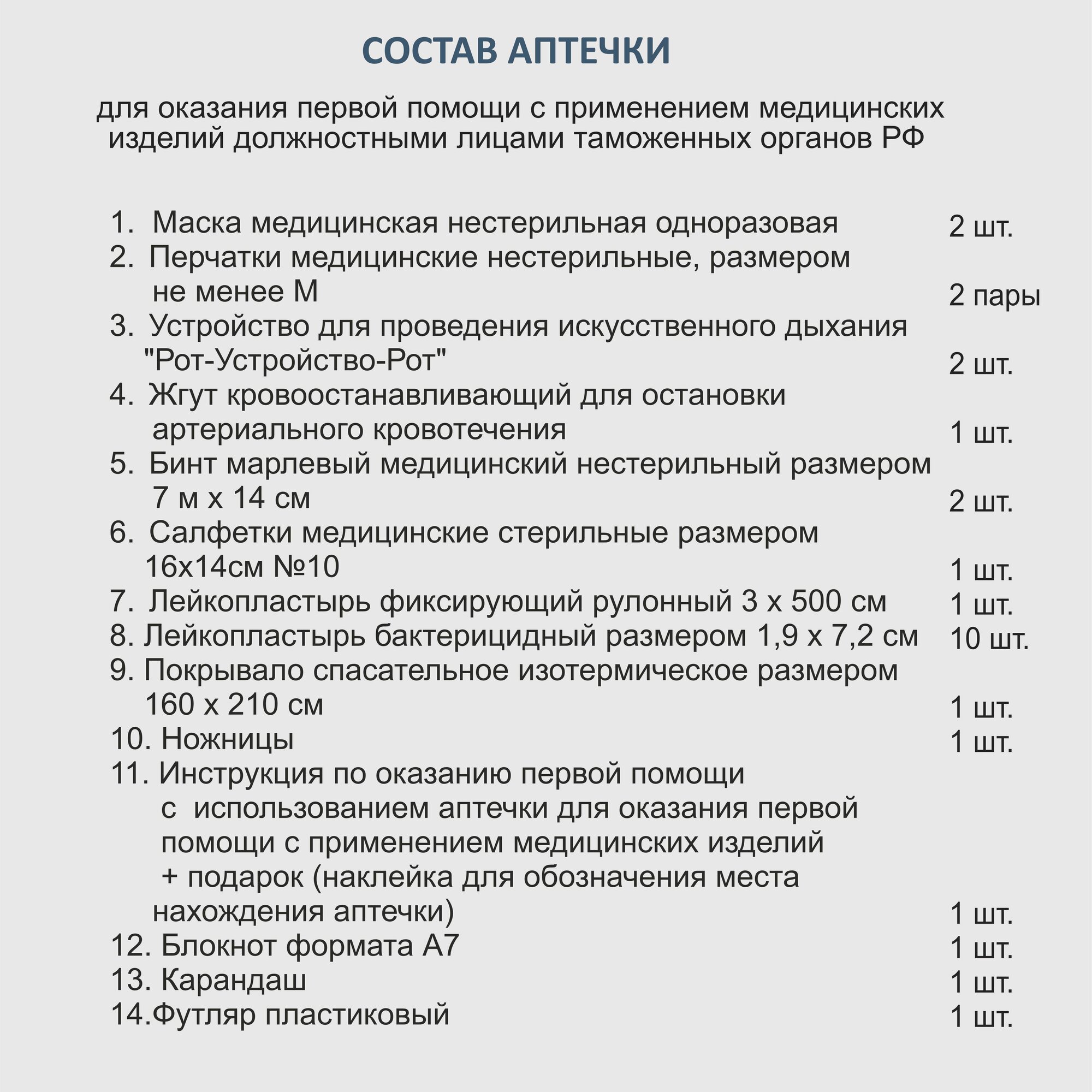 Аптечка по новому приказу 184-н для таможенных органов РФ интересное:
