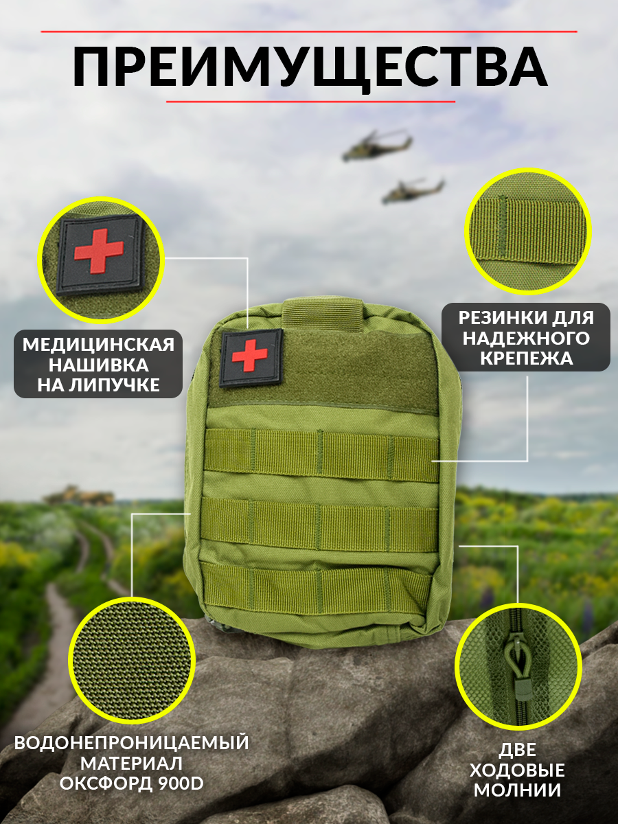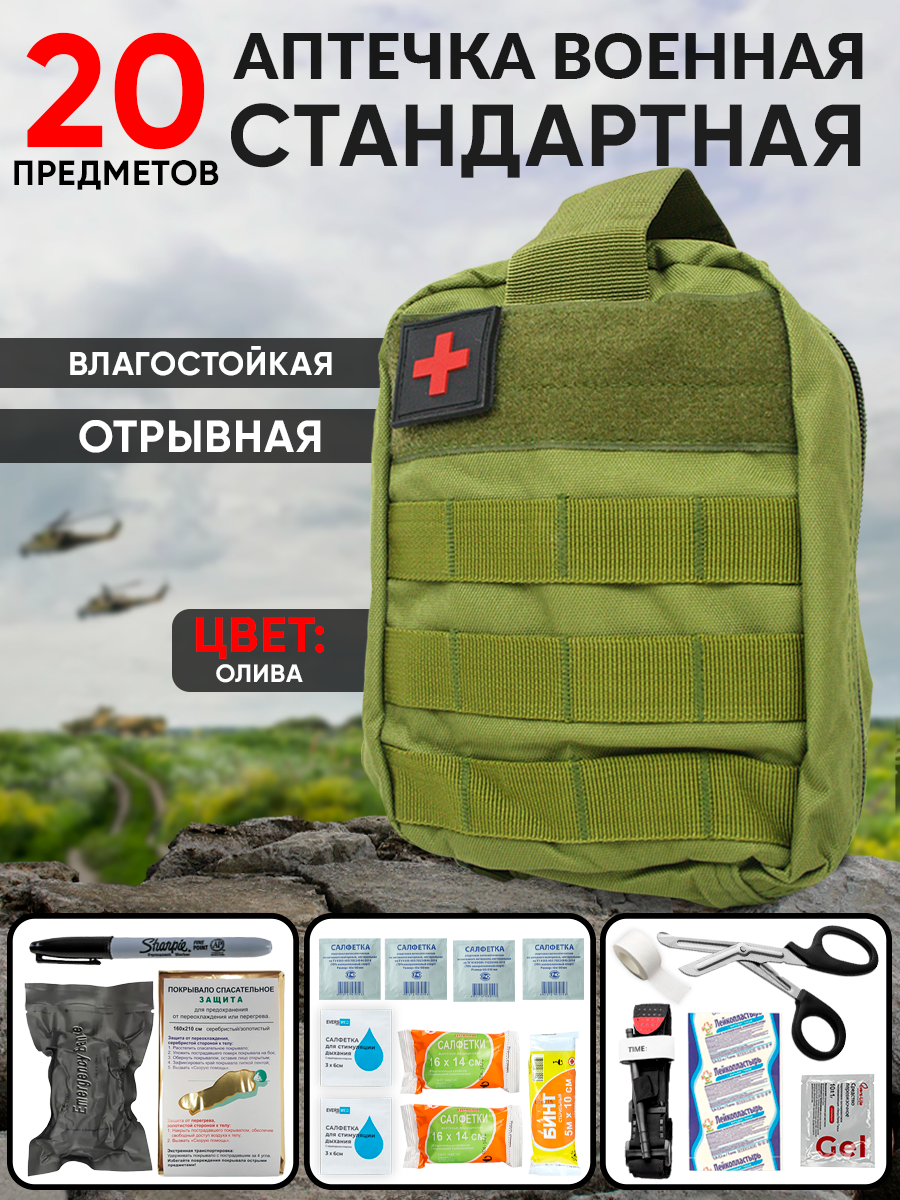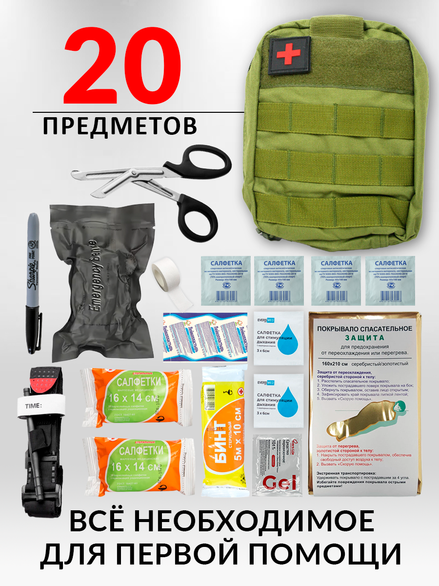 Аптечка тактическая укомплектованная 20 предметов олива интересное: