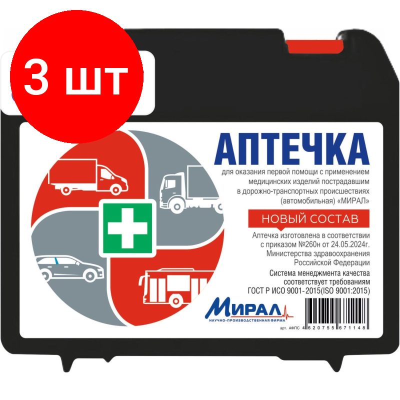 Купить Комплект 3 штук, Аптечка первой пом автомоб. по приказу №260н"Мирал-Н"Пл. футляр малый афпм-н