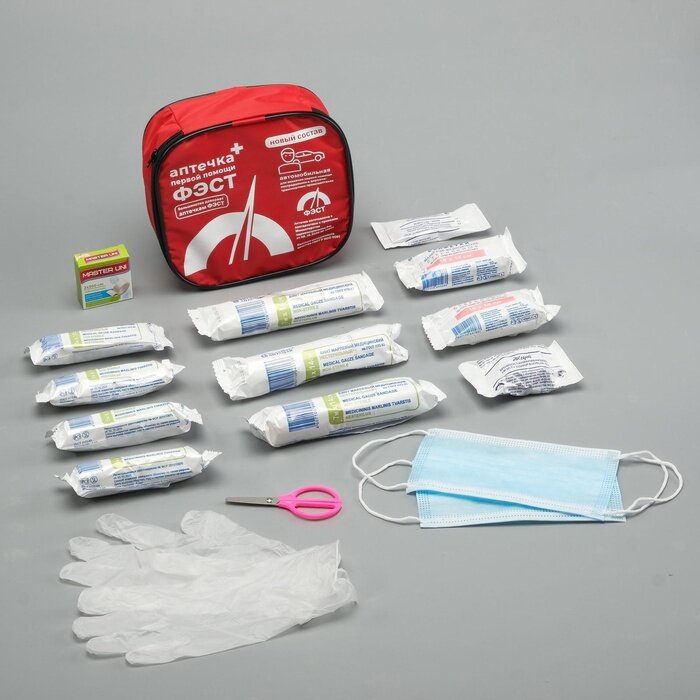 Аптечка автомобильная ФЭСТ футляр из полистирола, новый состав по приказу № 1080Н от 08.10.20