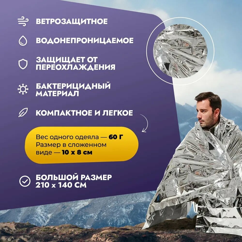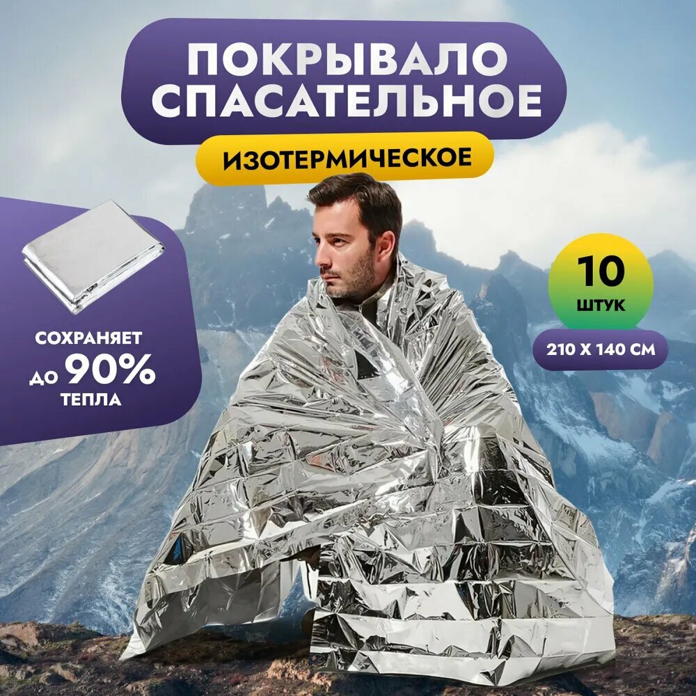 Термоодеяло спасательное 10шт тактическое изотермическое многоразовое для автомобильной аптечки 140х210 см интересное: