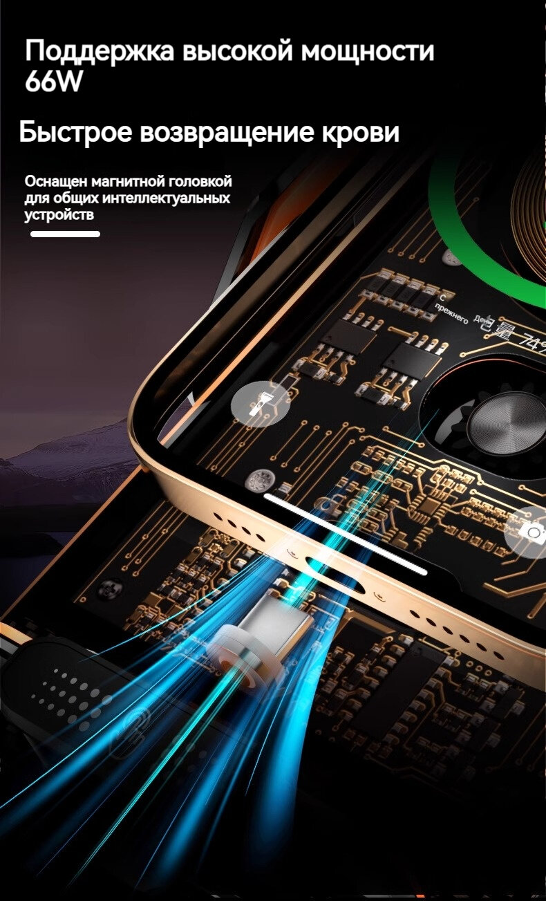 Автомобильное зарядное устройство 66 W, с магнитом, с жестким футляром интересное: