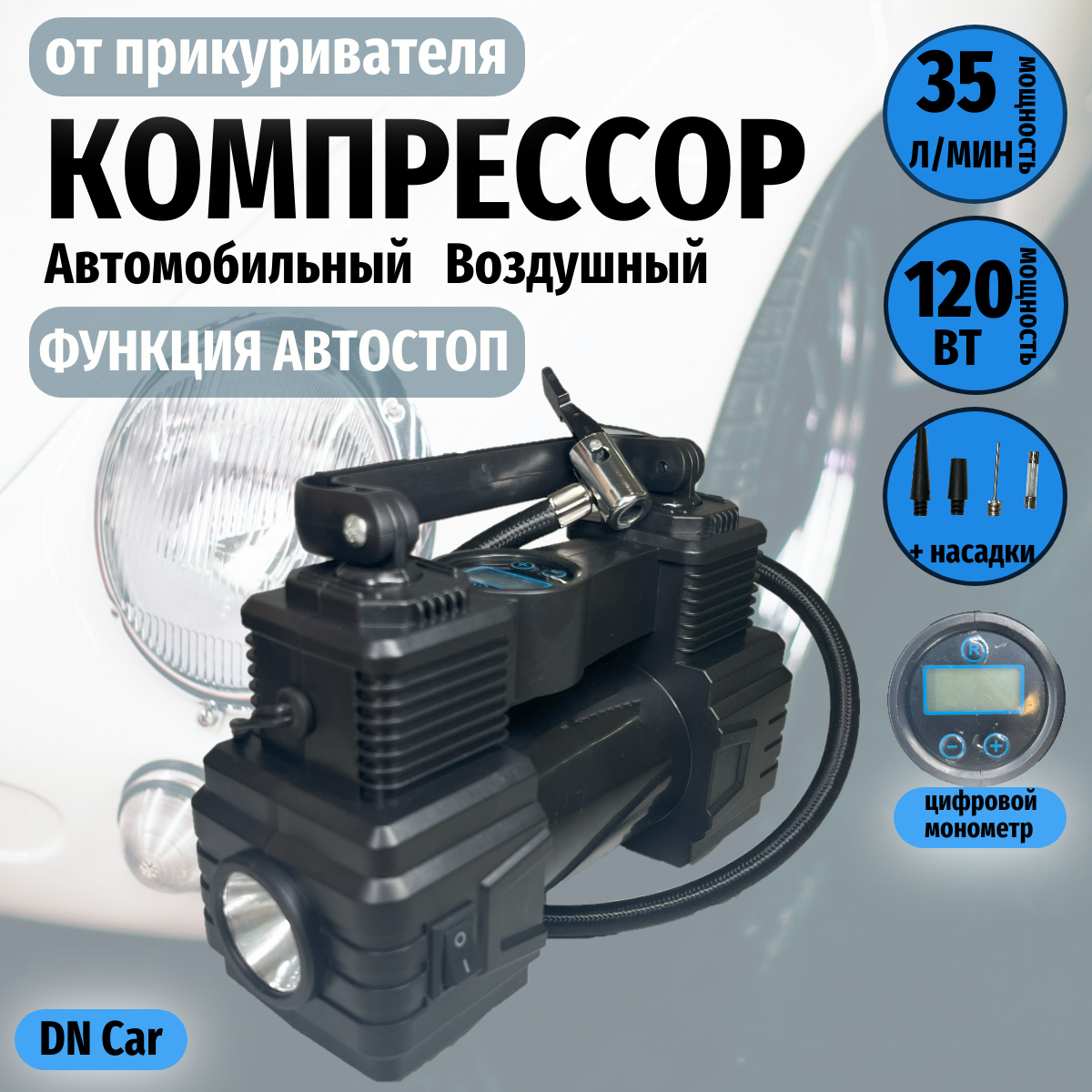 Ниже Вы можете прочитать отзывы на Компрессор автомобильный, 120 Вт, 35 л/мин от гнезда прикуривателя, с функцией автостоп, ознакомится с подробными характеристиками, посмотреть интересные обзоры и фотографии на Компрессор автомобильный, 120 Вт, 35 л/мин от гнезда прикуривателя, с функцией автостоп.