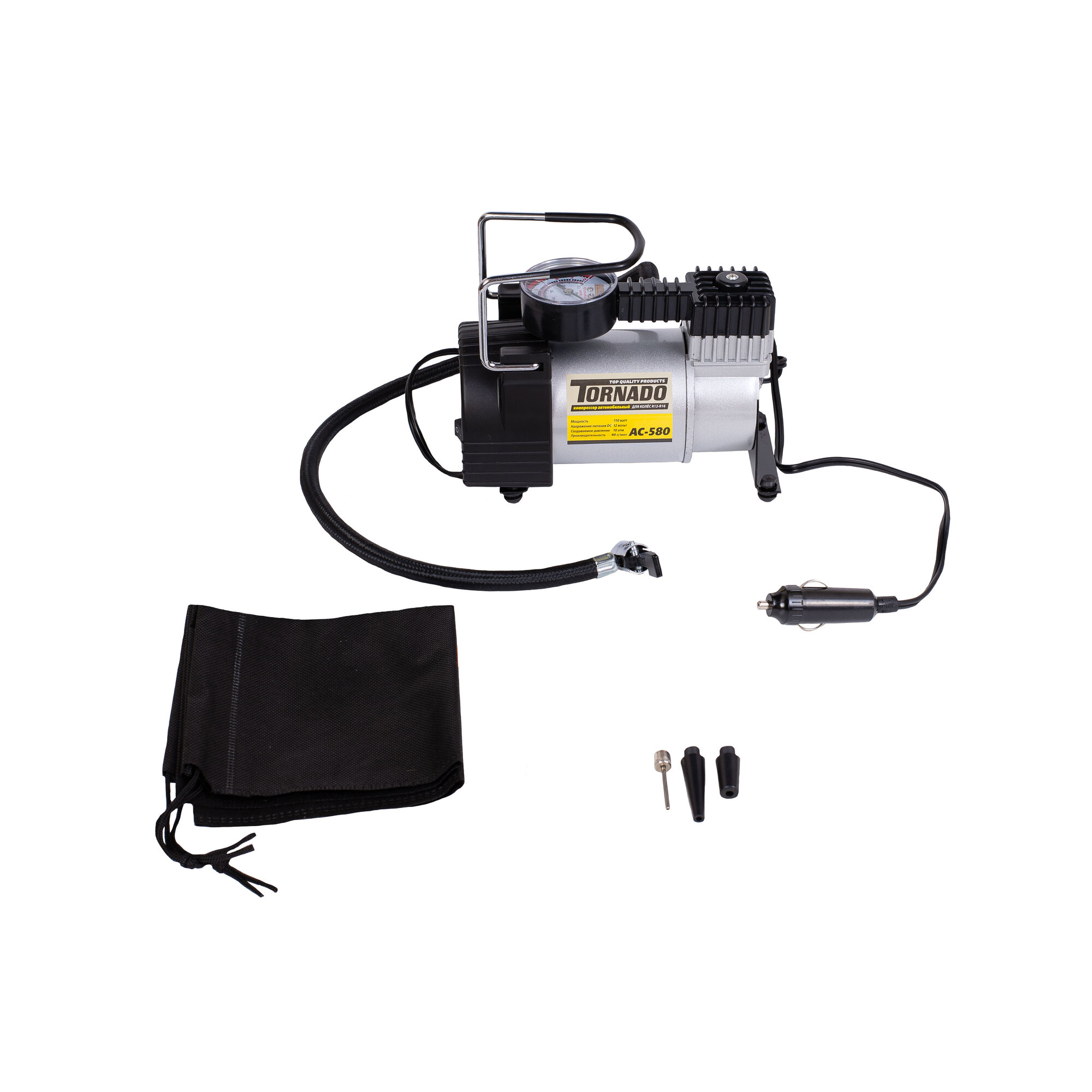 Компрессор автомобильный 10кг/см, 12В, 45 л/мин в сумке Tornado BIG POWER, AC580SL интересное: