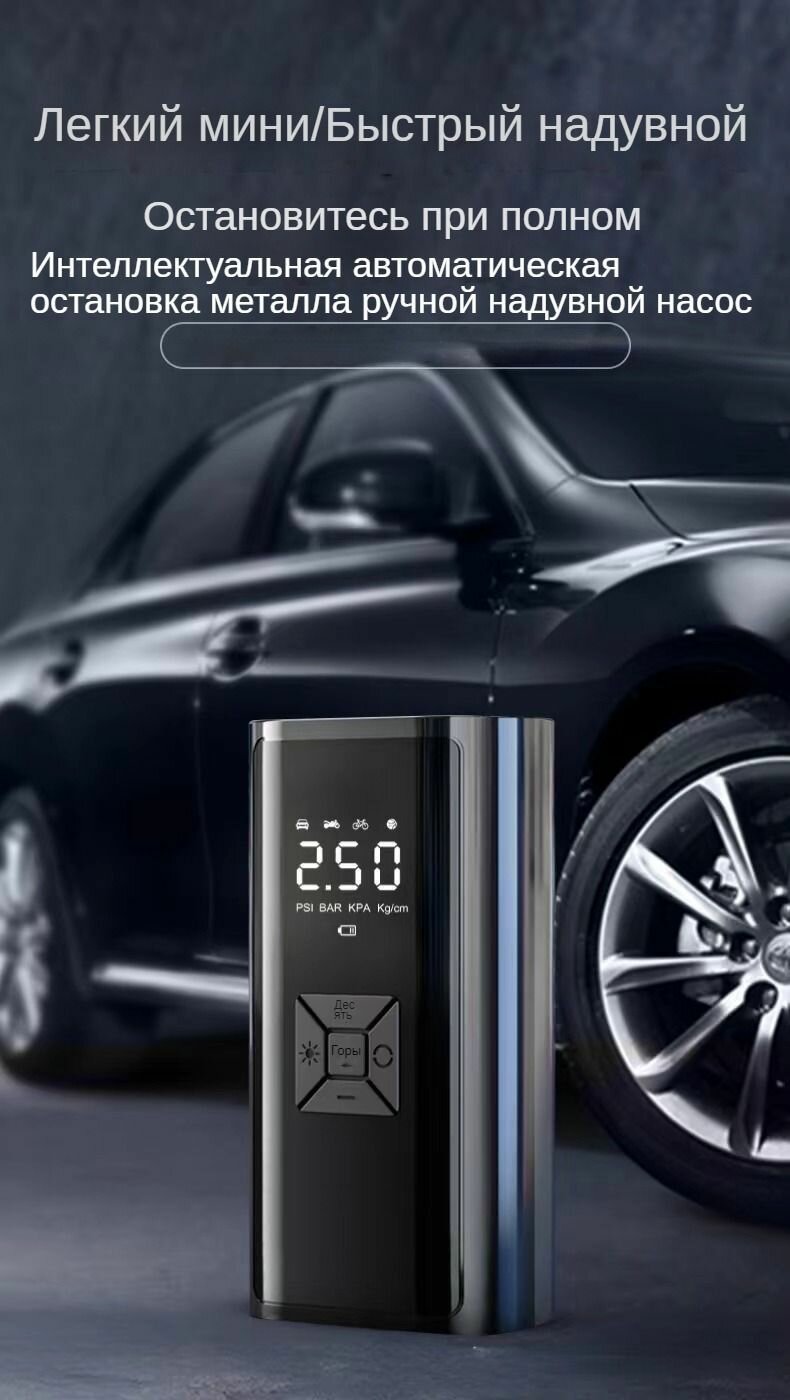 Насос Автомобильный с LED экраном со встроенным АКБ и зарядкой от USB (Черный) интересное:
