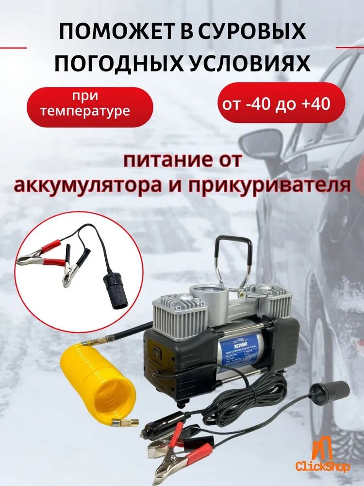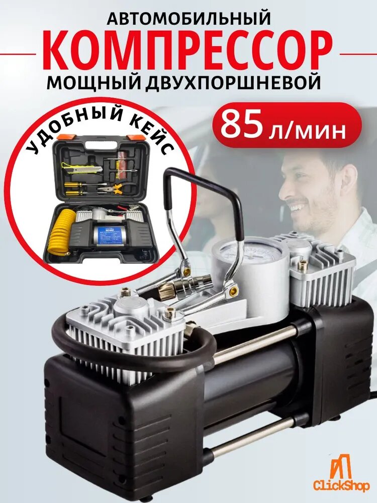 Двухпоршневой автокомпрессор для машины, 85 л/ мин набор в чемодане интересное: