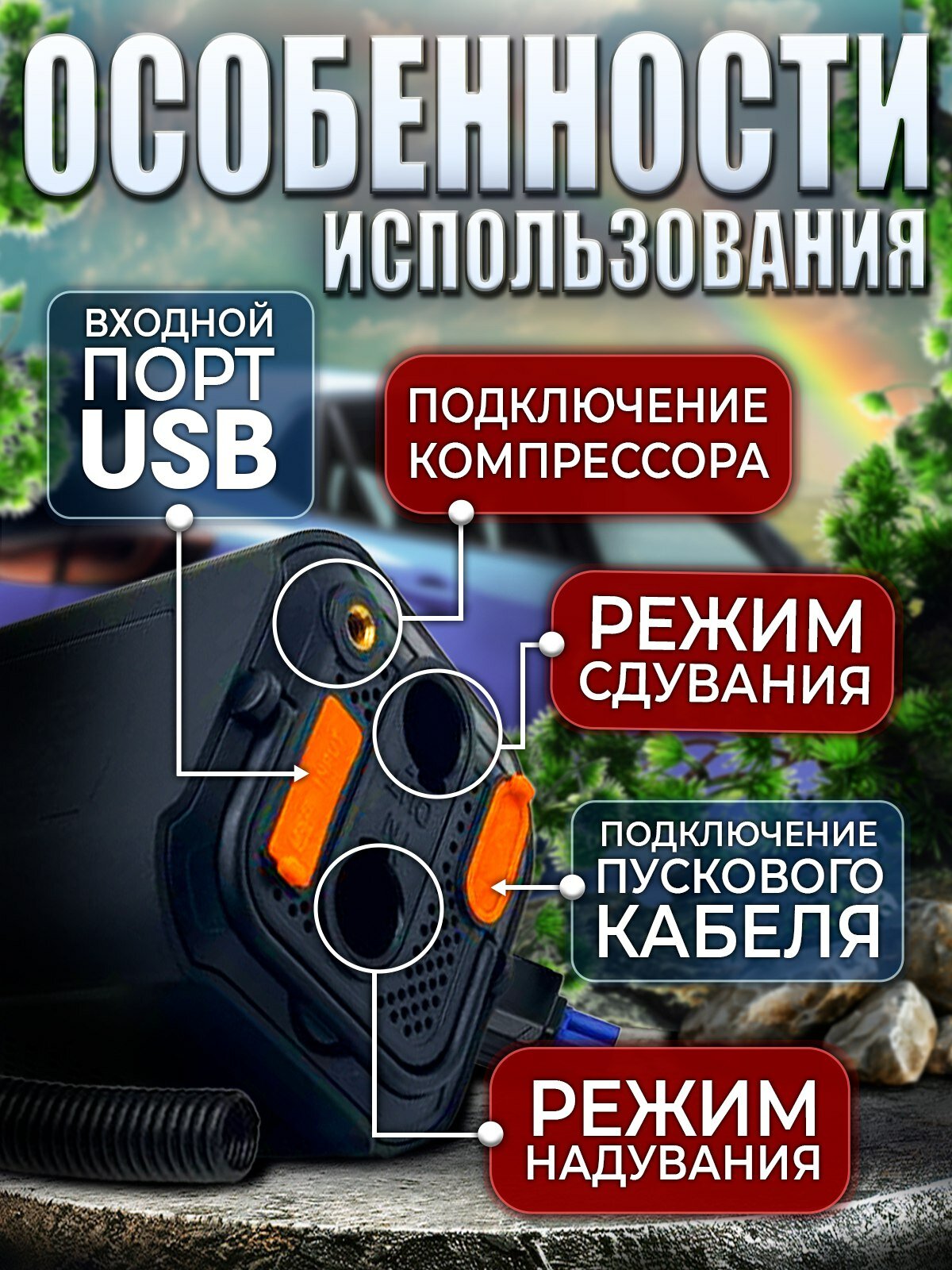 Компрессор автомобильный 4в1, Пуско-зарядное устройство для автомобиля, насос интересное: