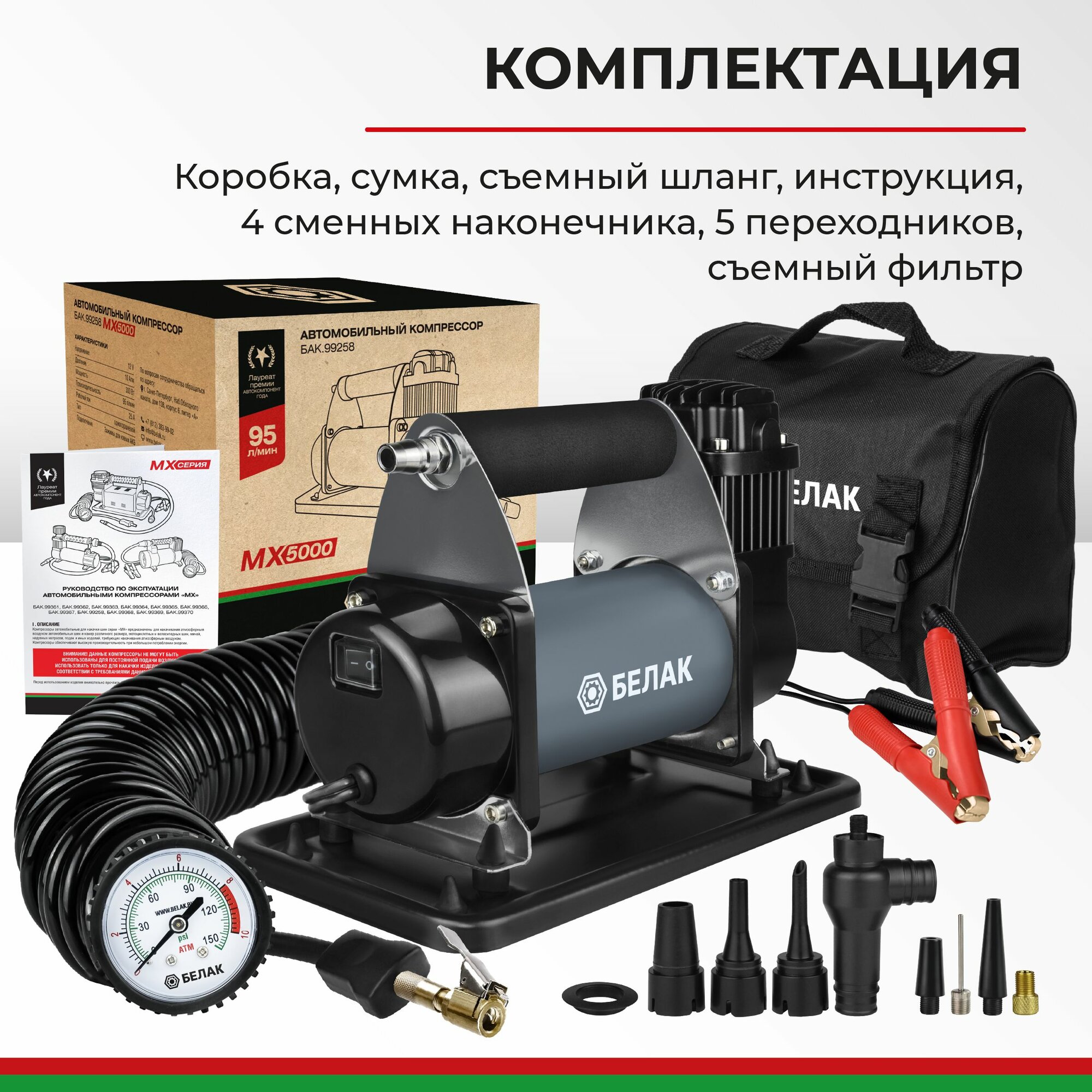 Компрессор автомобильный мощный 95 л/мин, MX Серия, БелАК БАК.99258 интересное: