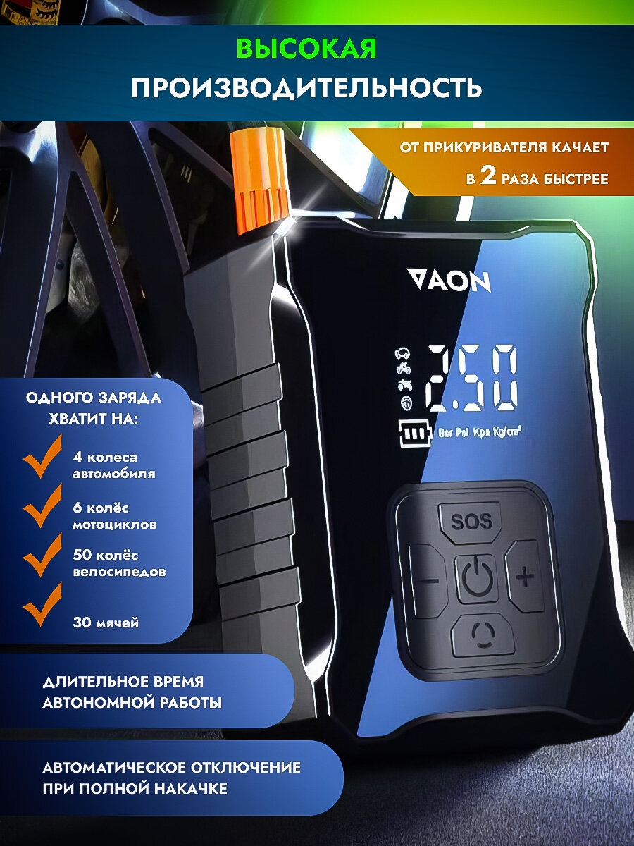 Компрессор автомобильный VAON, мощный автоматический насос со встроенным аккумулятором(powerbank) интересное: