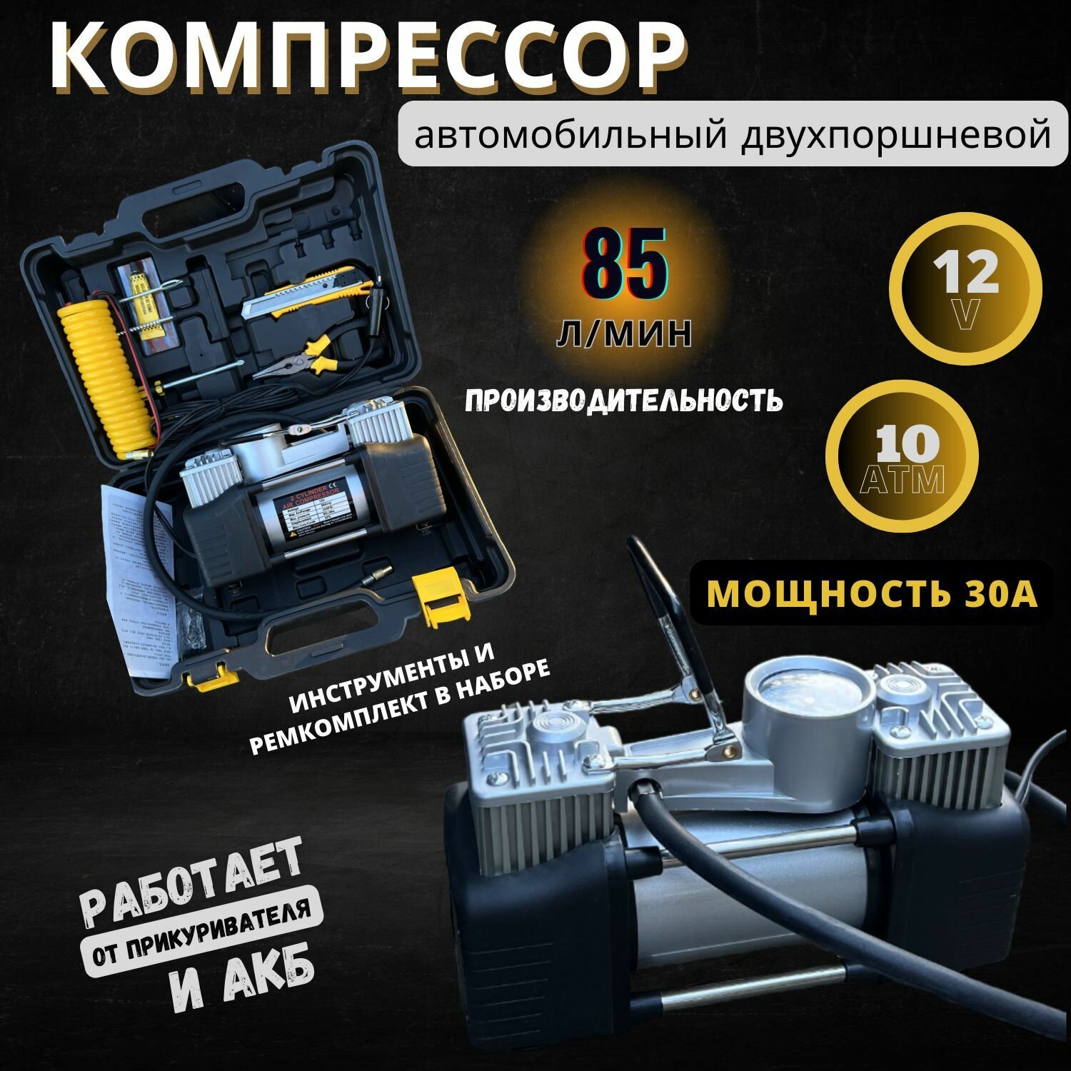 Компрессор автомобильный двухпоршневой 85 л/мин с кейсом для хранения интересное: