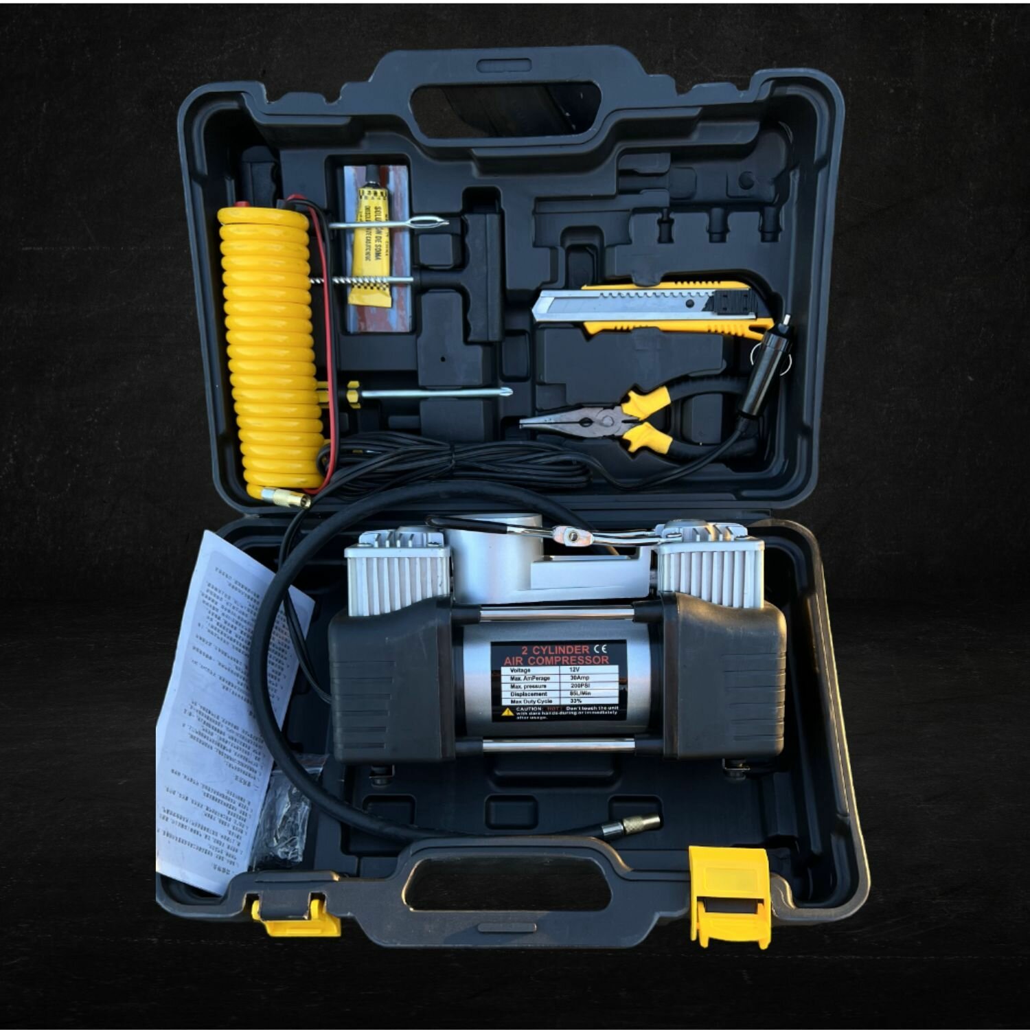 Купить Компрессор автомобильный двухпоршневой 85 л/мин с кейсом для хранения