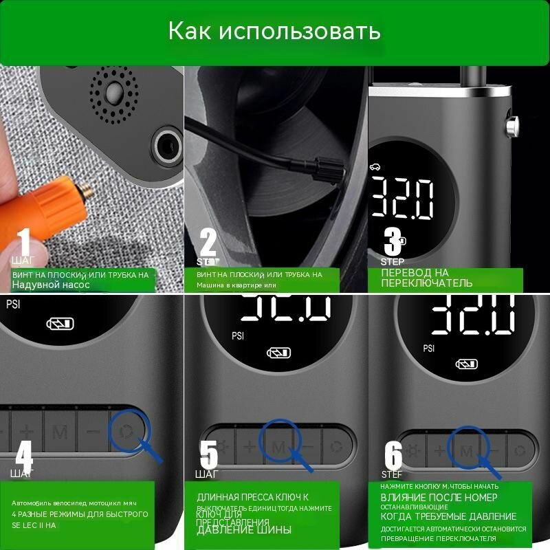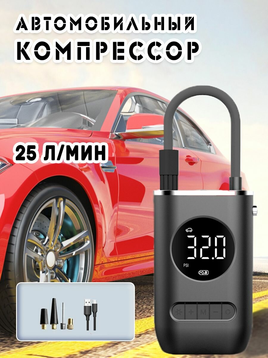 Компрессор автомобильный портативный, Беспроводной, 50 Вт, с цифровым манометром и фонарем, 25 л/мин интересное: