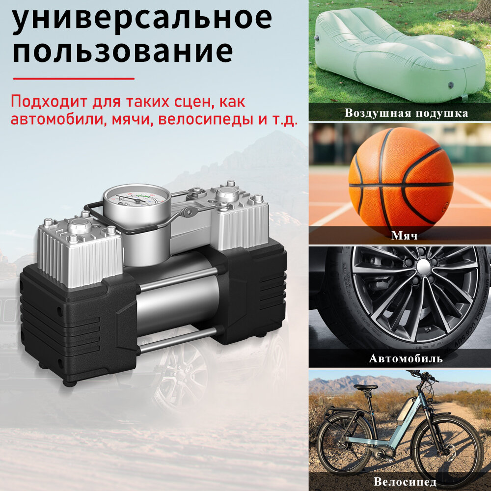 Купить Компрессор автомобильный, H24-C19 Двойной поршень насос автомобильный,180W, 60L/мин, 12В, серебристый