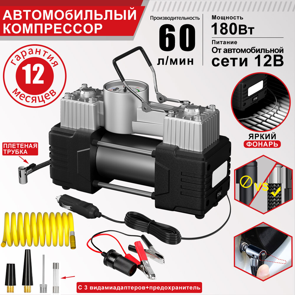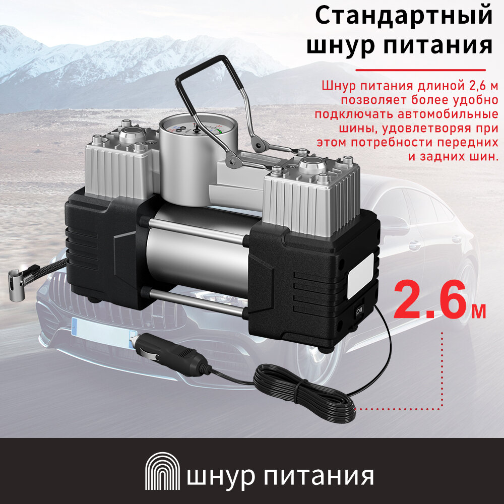 Компрессор автомобильный, H24-C19 Двойной поршень насос автомобильный,180W, 60L/мин, 12В, серебристый интересное: