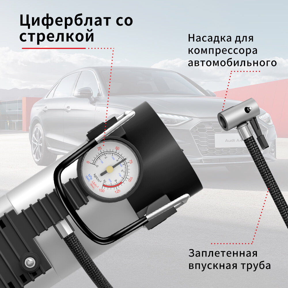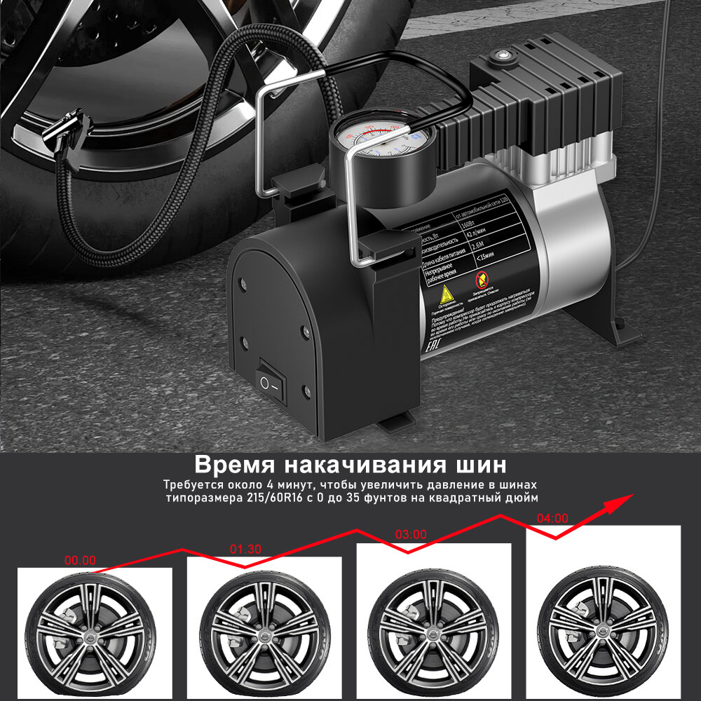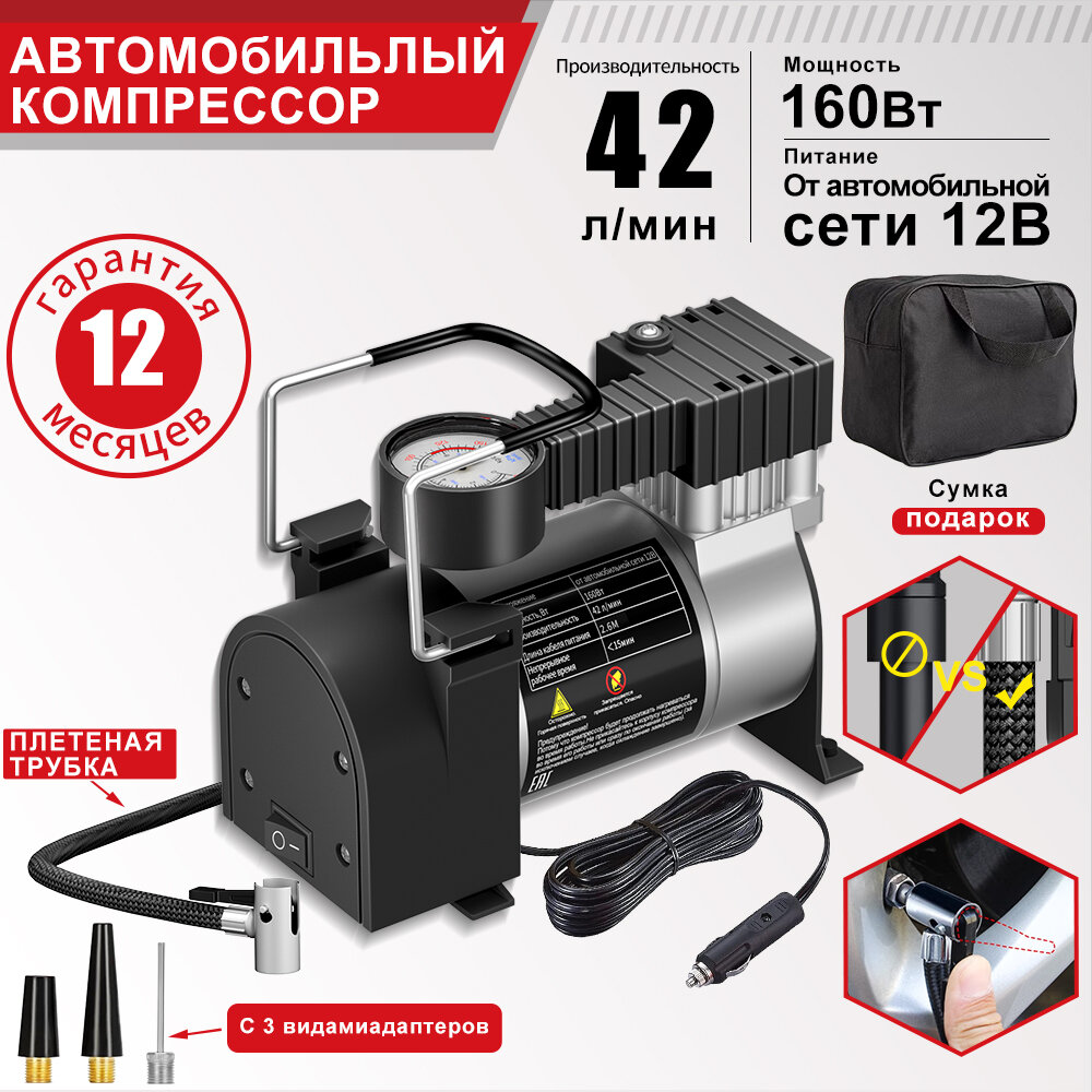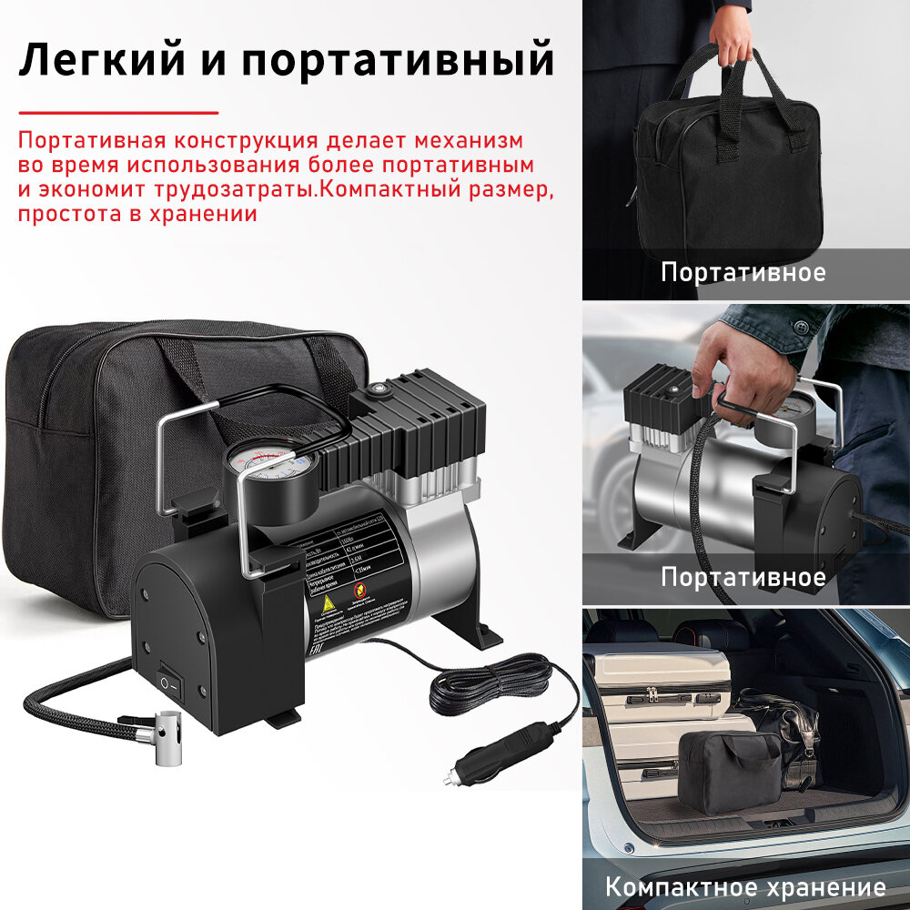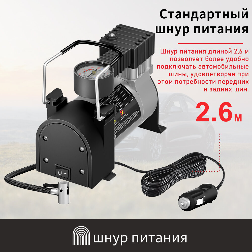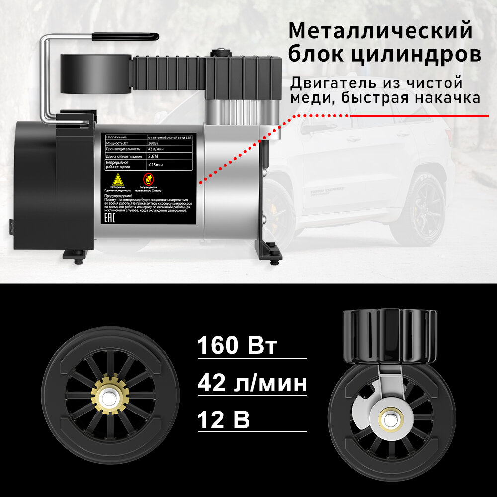 Компрессор автомобильный M24-B01, Одиночный поршень, 160W, 42л/мин, аналоговый манометр, серебристый интересное:
