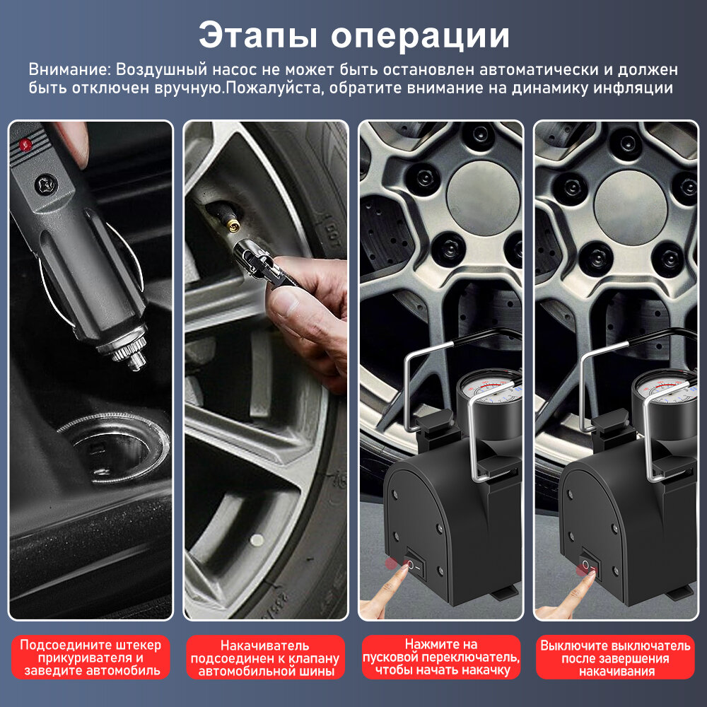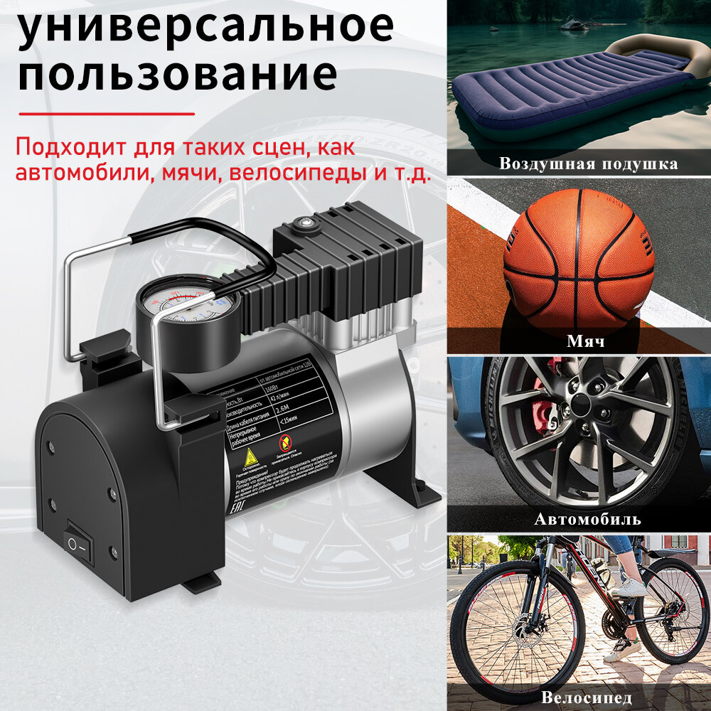 Компрессор автомобильный, Двойной поршень насос автомобильный H24-C30, 220Вт, 12В, 75л/мин