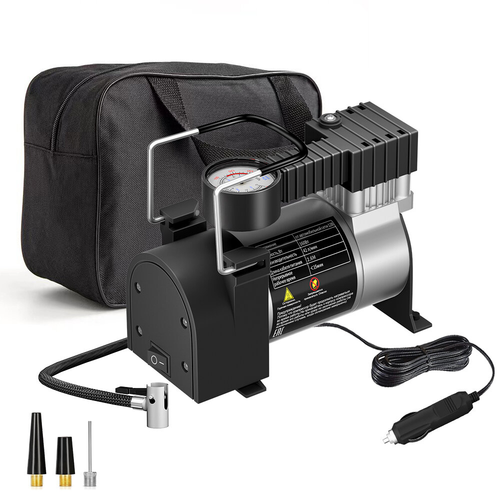 Компрессор автомобильный, H24-C19 Двойной поршень насос автомобильный,180W, 60L/мин, 12В, серебристый