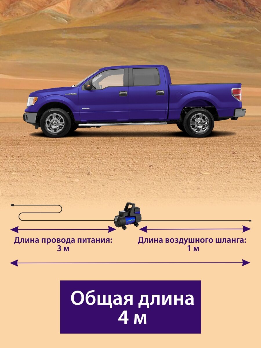 Воздушный компрессор Goodyear GDYR-70, 70 л/мин,/двухпоршневой/питание от АКБ/съемный витой шланг/сумка для хранения