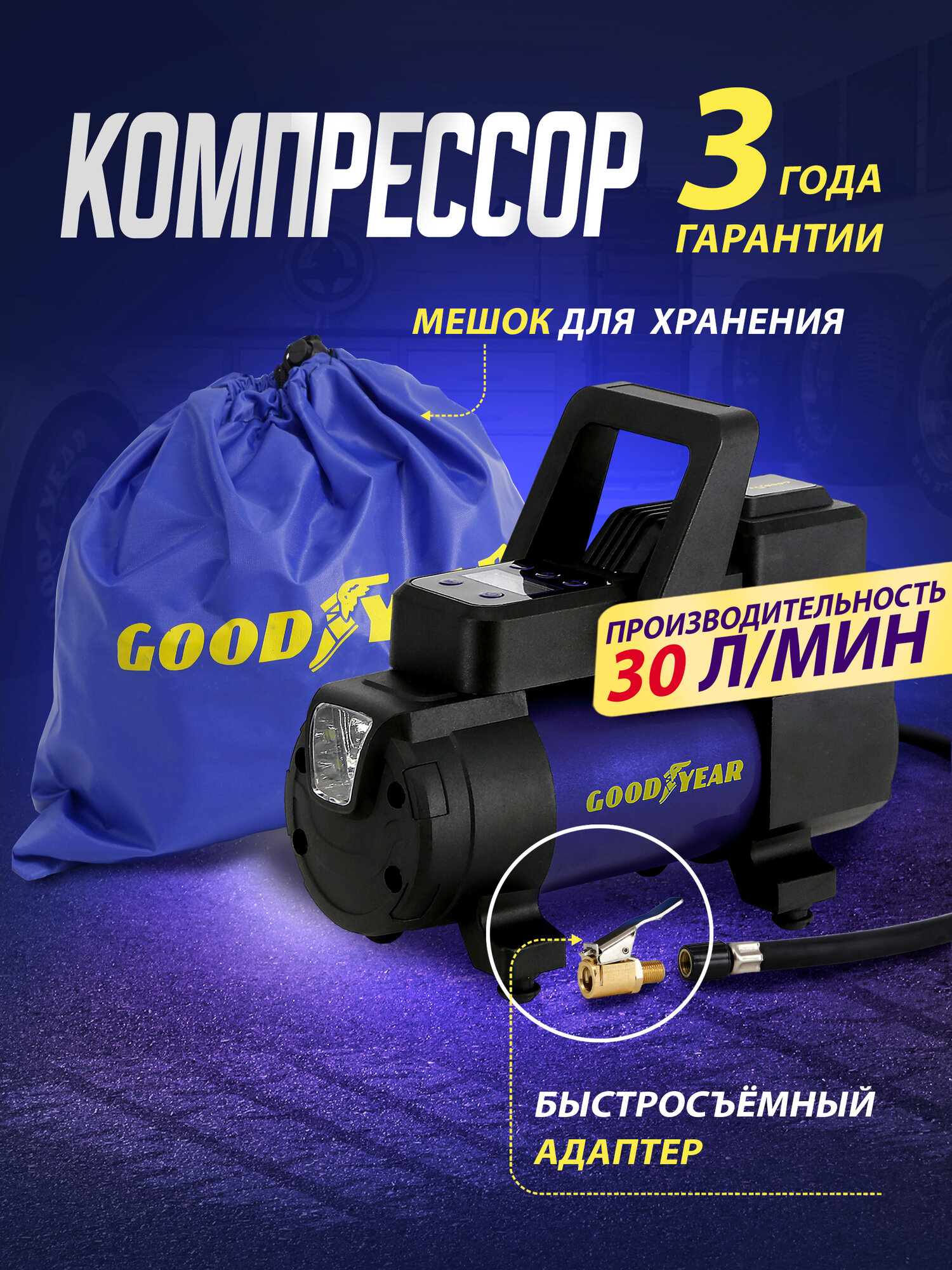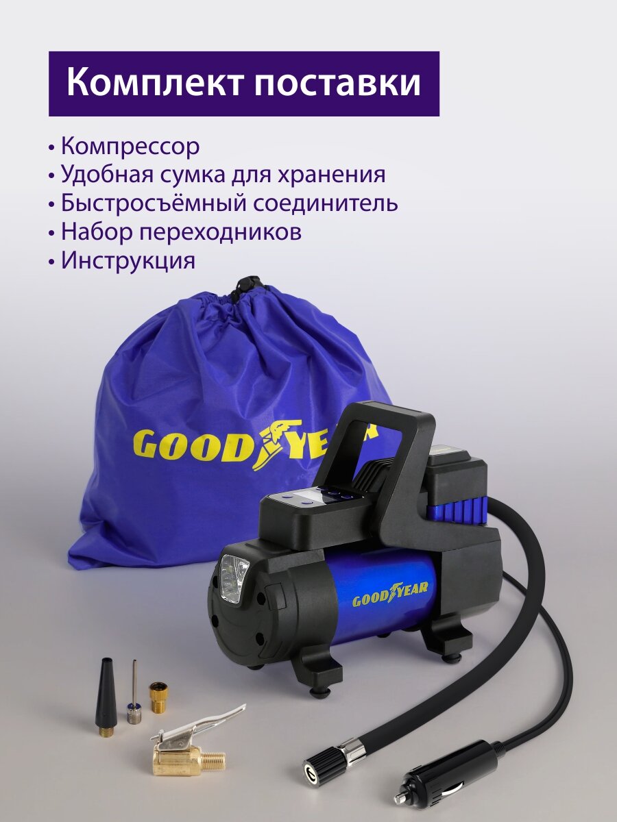 Компрессор с цифровым манометром и функцией автоматического отключения Goodyear GDYR-30 Smart с фонарем, 30 л/мин интересное: