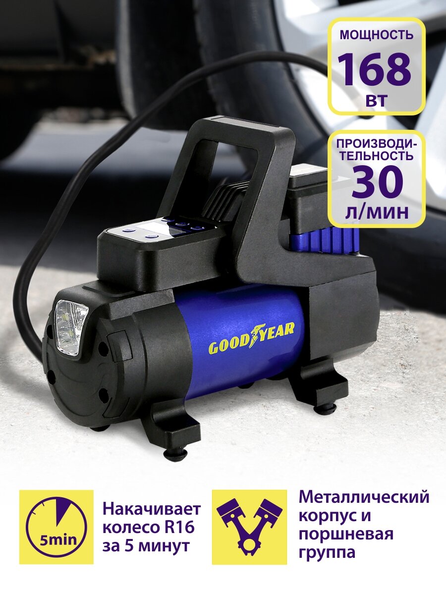 Купить Компрессор с цифровым манометром и функцией автоматического отключения Goodyear GDYR-30 Smart с фонарем, 30 л/мин