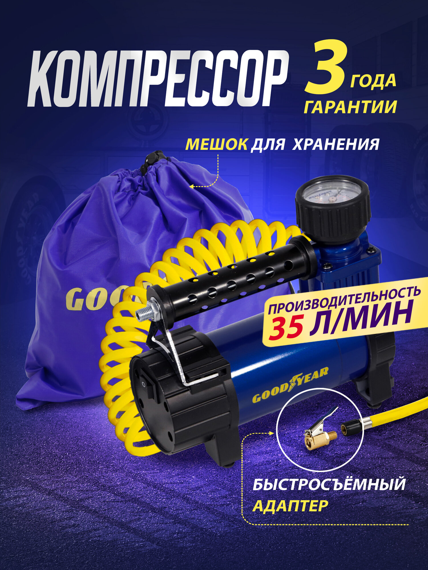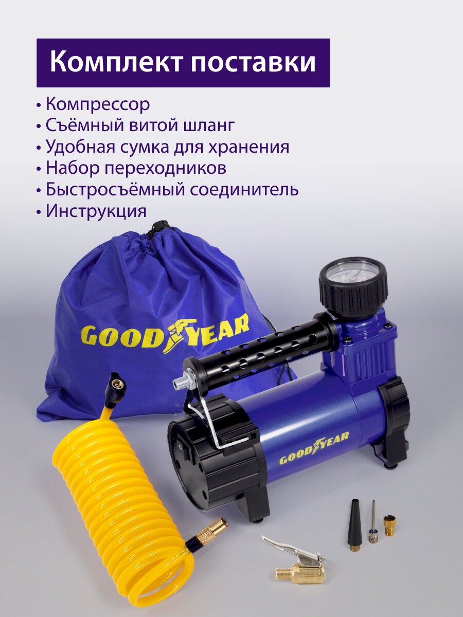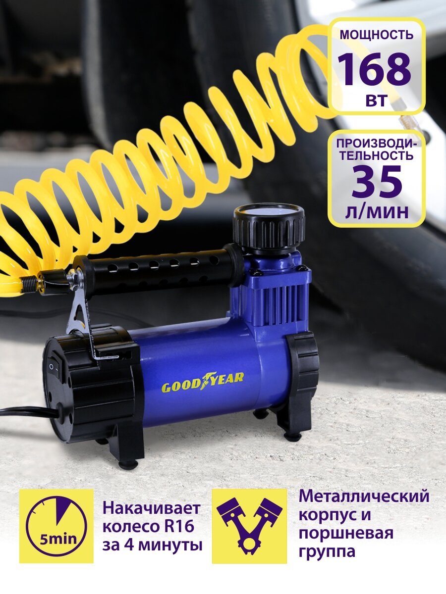 Воздушный компрессор Goodyear GDYR-35, 35 л/мин, съемный витой шланг, сумка для хранения интересное: