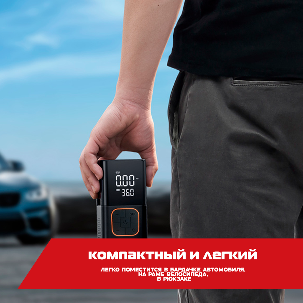 Компрессор автомобильный аккумуляторный / насос электрический беспроводной для авто, мото, велосипедов и мячей, умный насос, компрессор интересное: