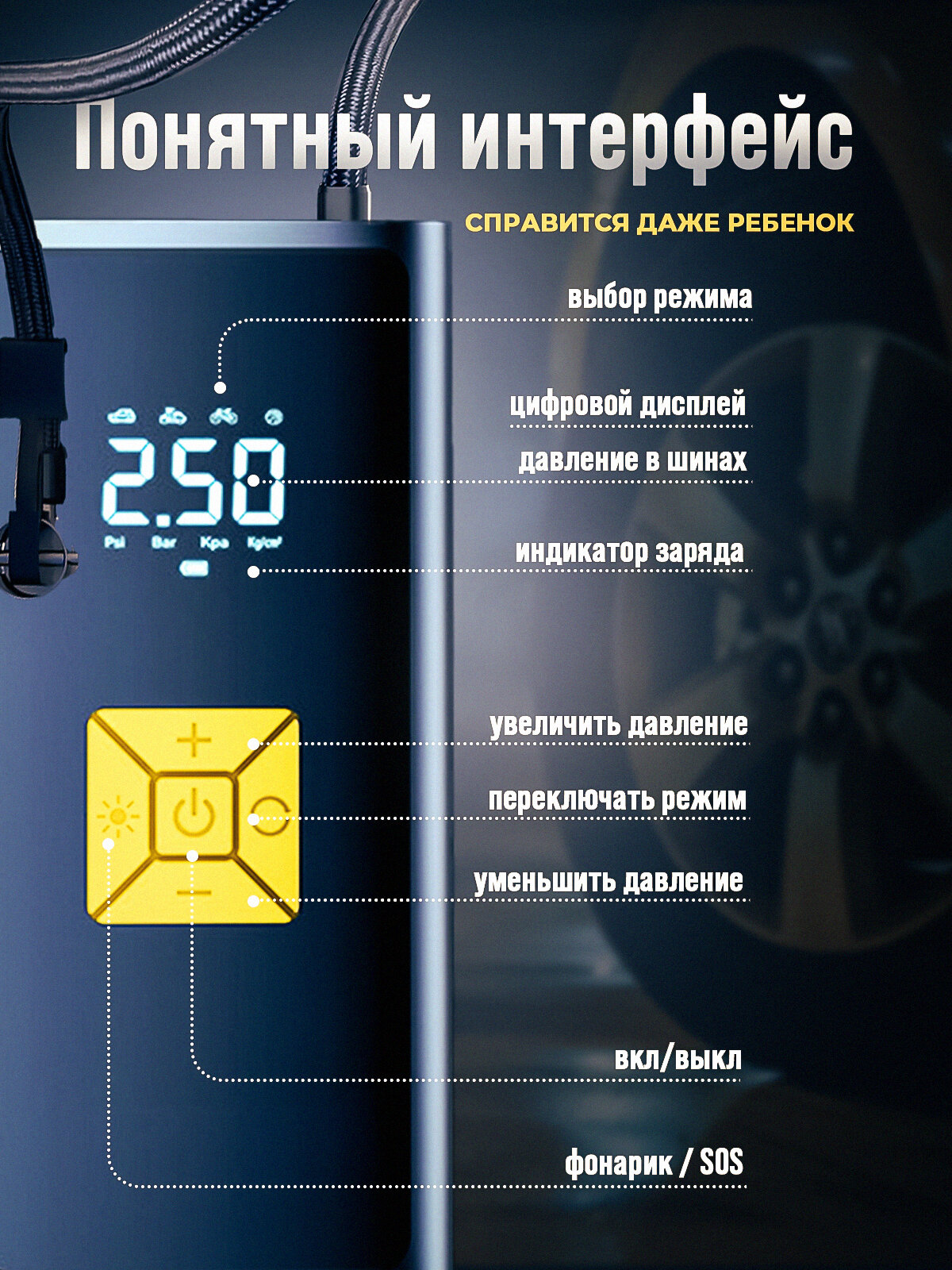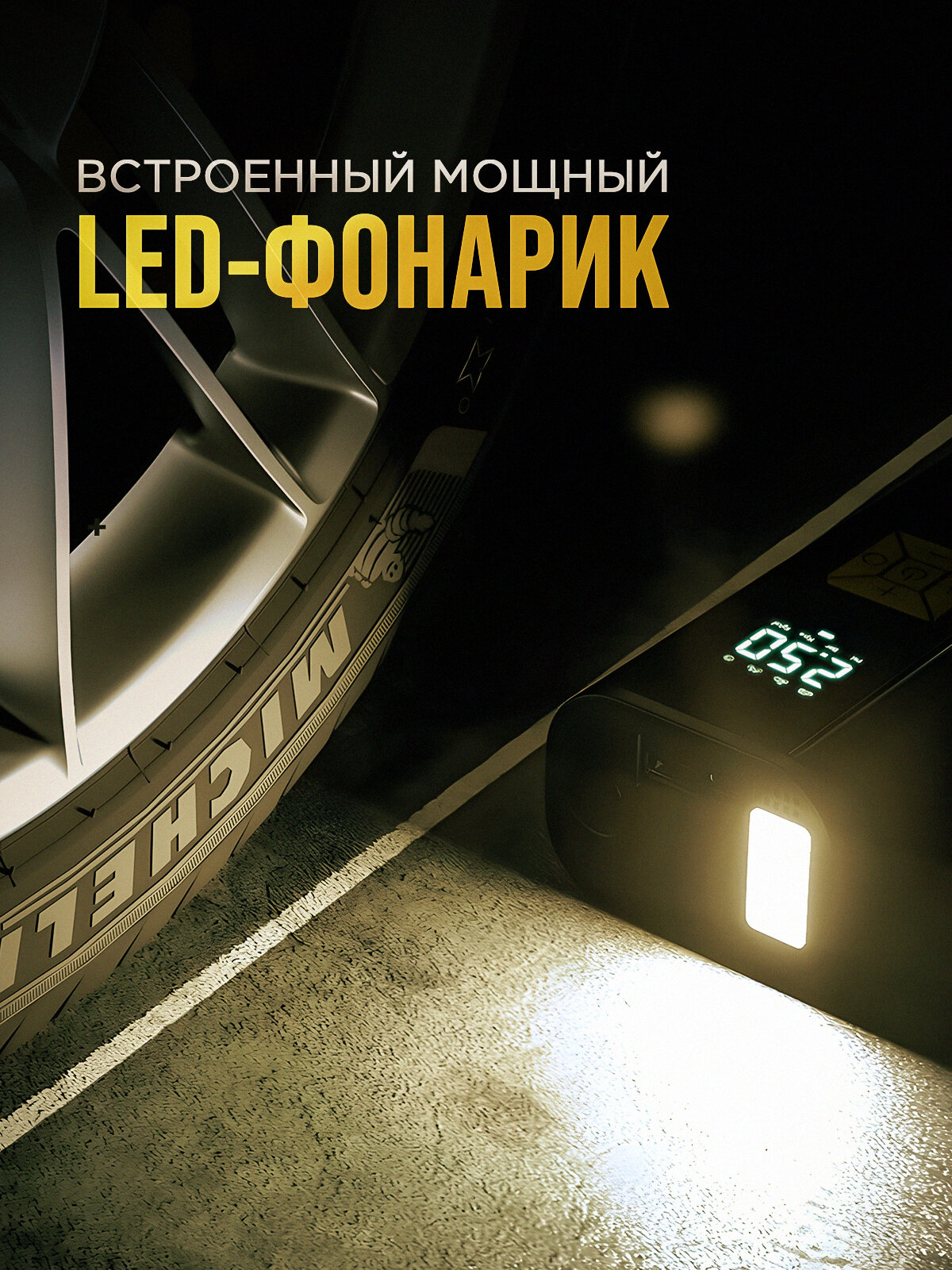 | Подробная комплектация | Компрессор, воздушный шланг, 4 переходника, кабель Type-C, шнур питания от прикуривателя |