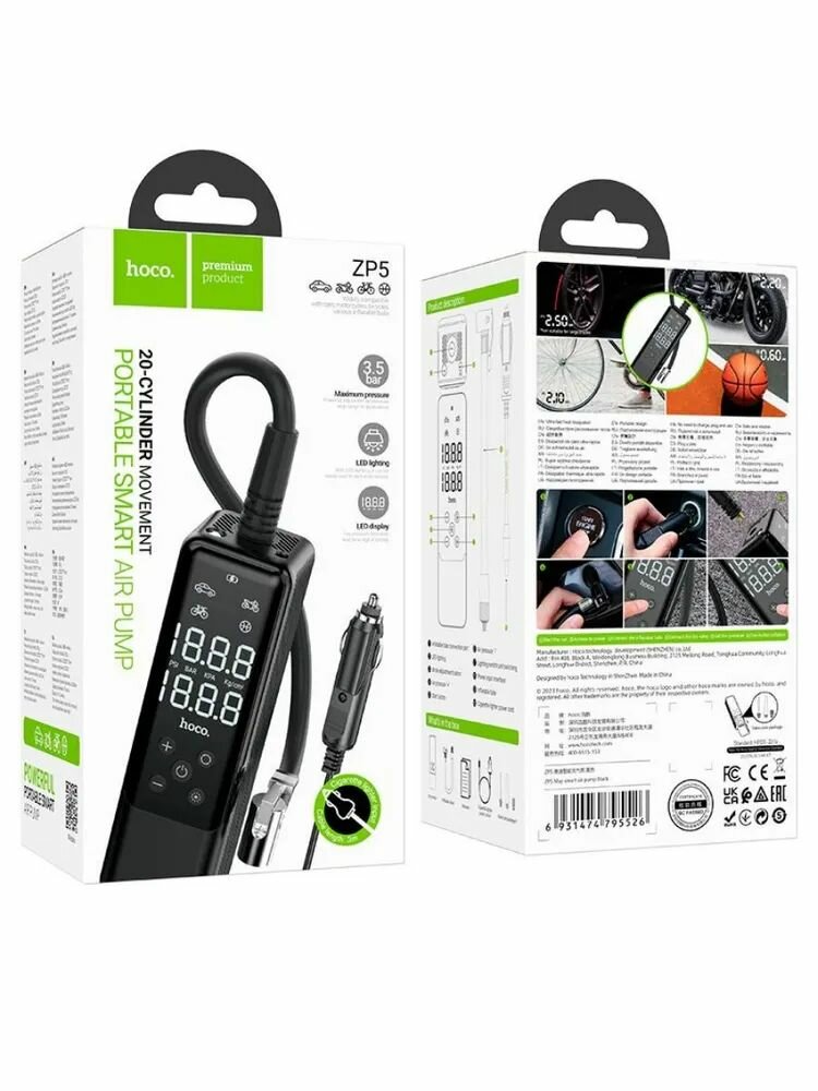 Купить Умный электрический насос для авто, велосипеда, мотоцикла, лодки, мяча Hoco ZP5. Автомобильный компрессор