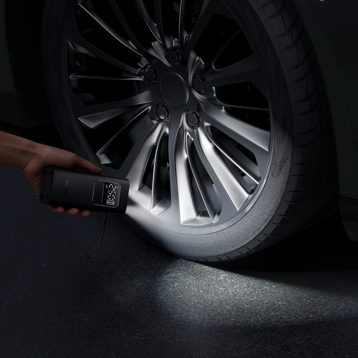Автомобильный автономный компрессор Baseus 4000mAh/14.8Wh 12V 150PSI цифровой для шин интересное: