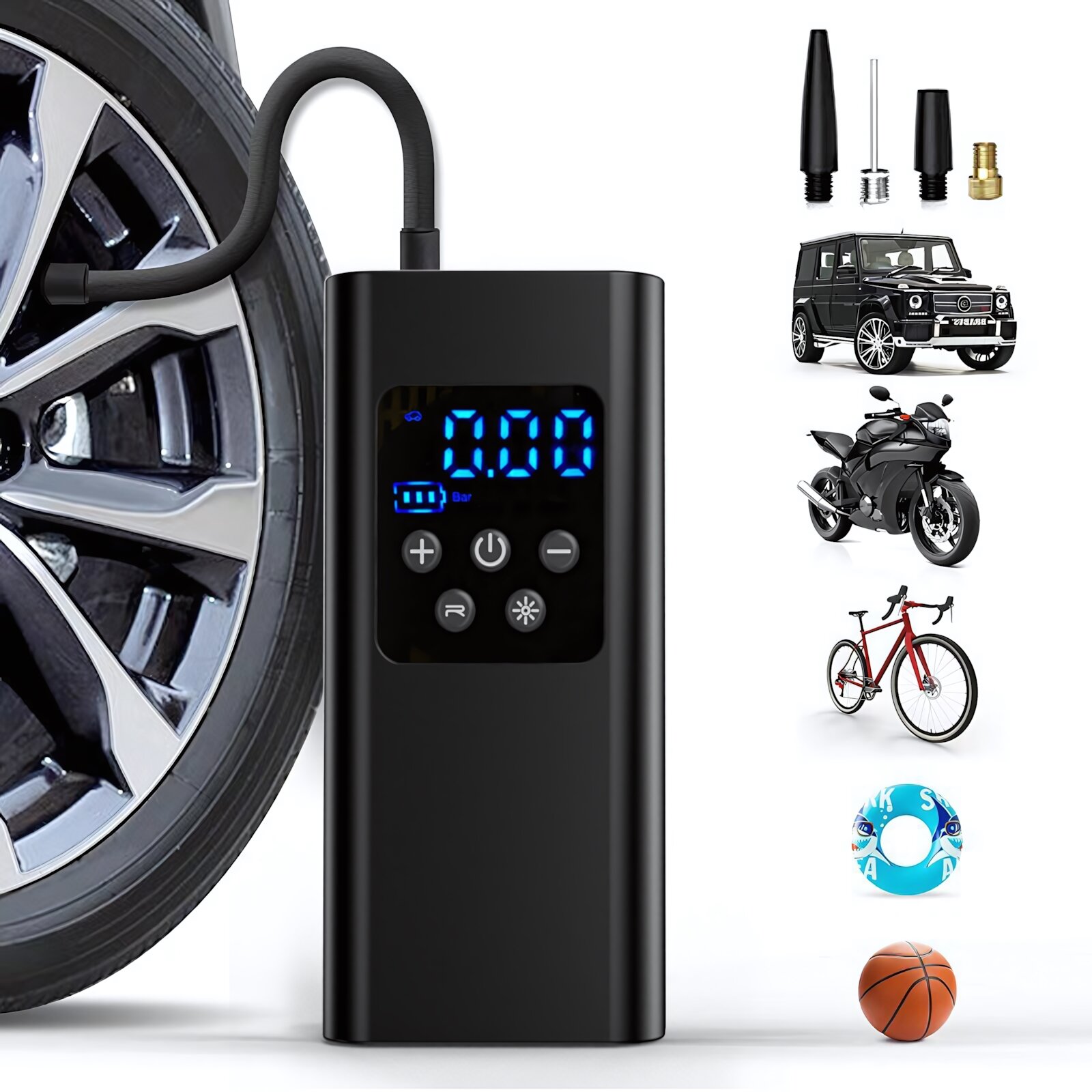 Компактный автомобильный компрессор, питание от аккумулятора, 3 насадки в комплекте, с подсветкой