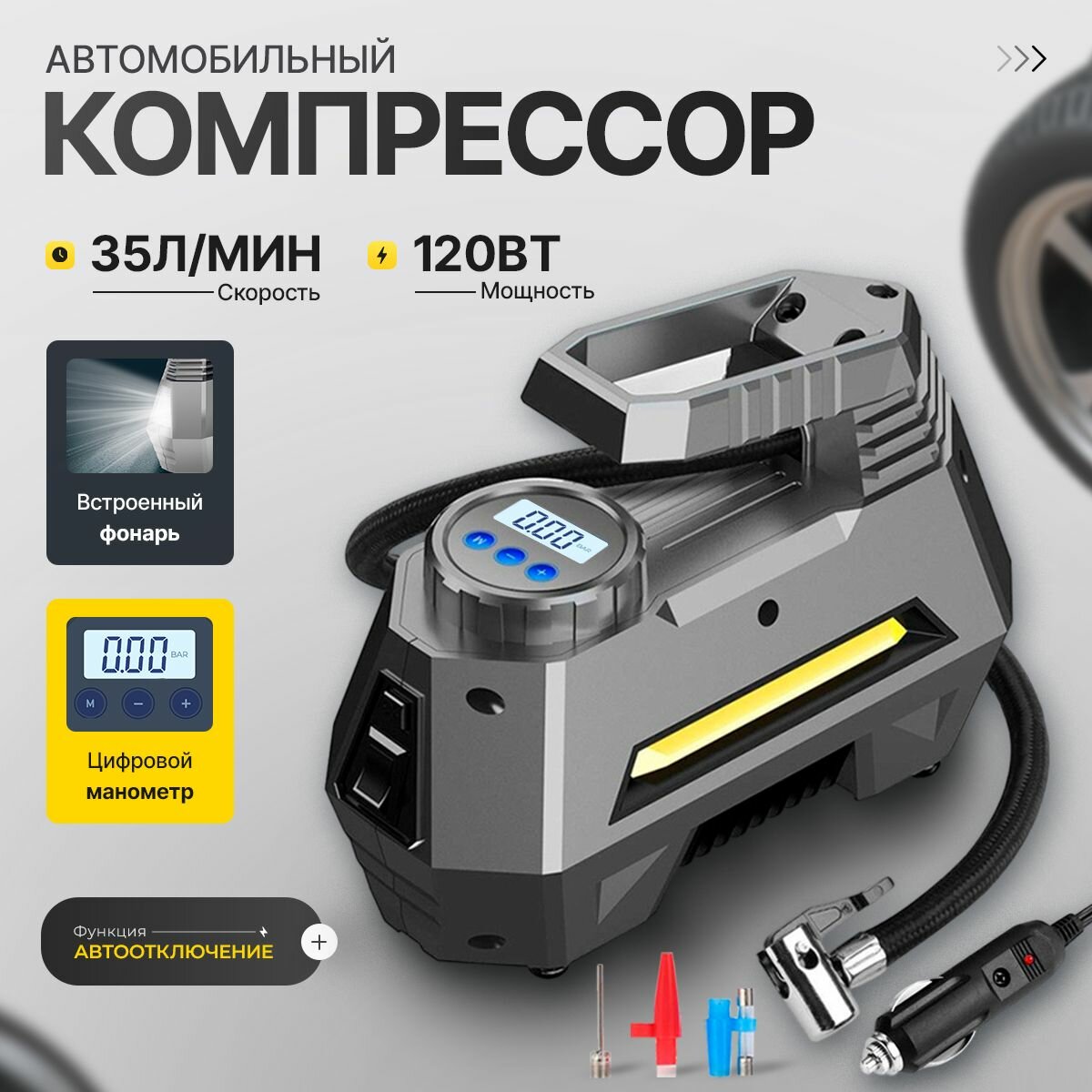 Автомобильный компрессор EDS-3631 с автоматическим отключением, насос для машины интересное: