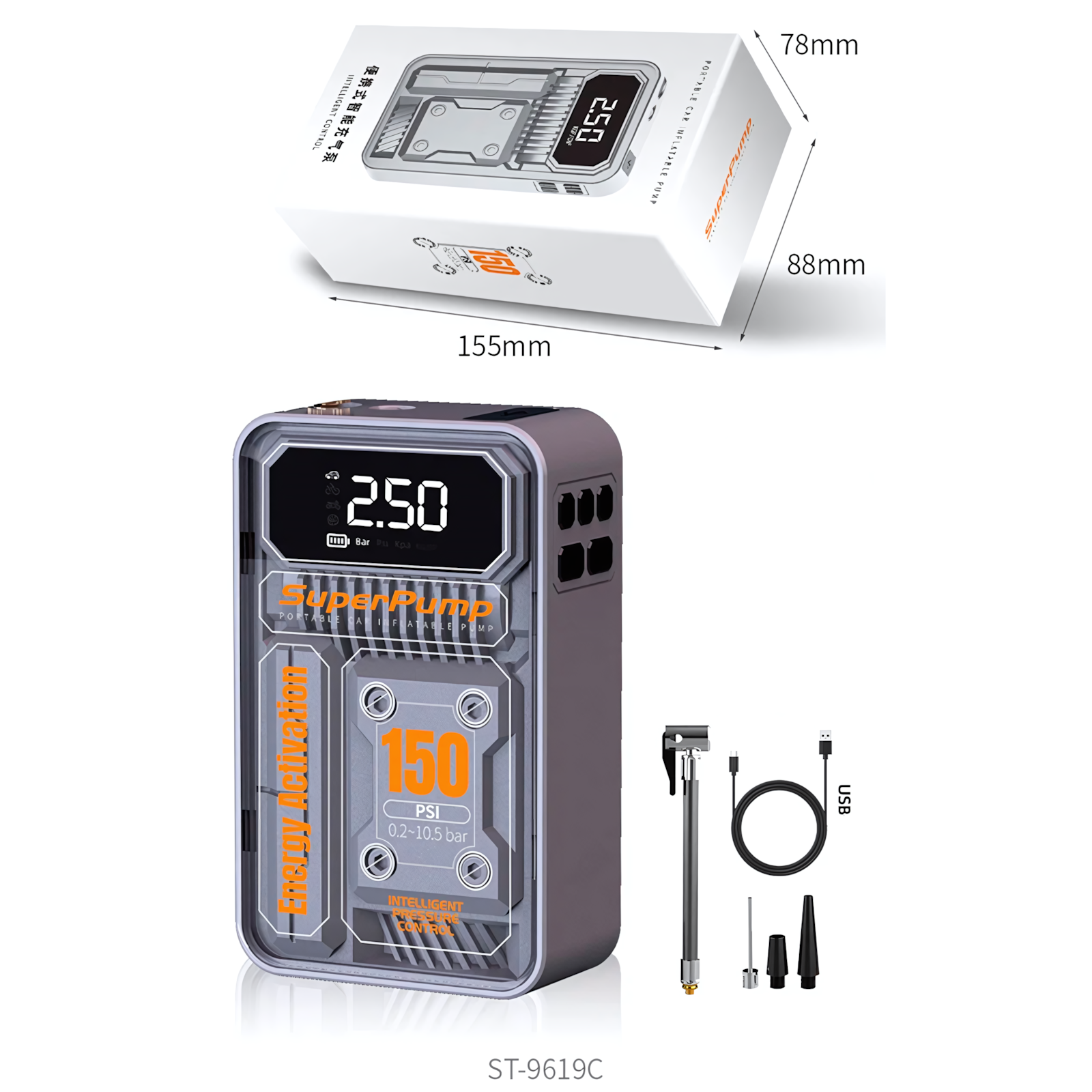 Купить Автомобильный беспроводной насос СТ-96, 60 Вт, с дисплеем, с разъемами USB и USB Type-C