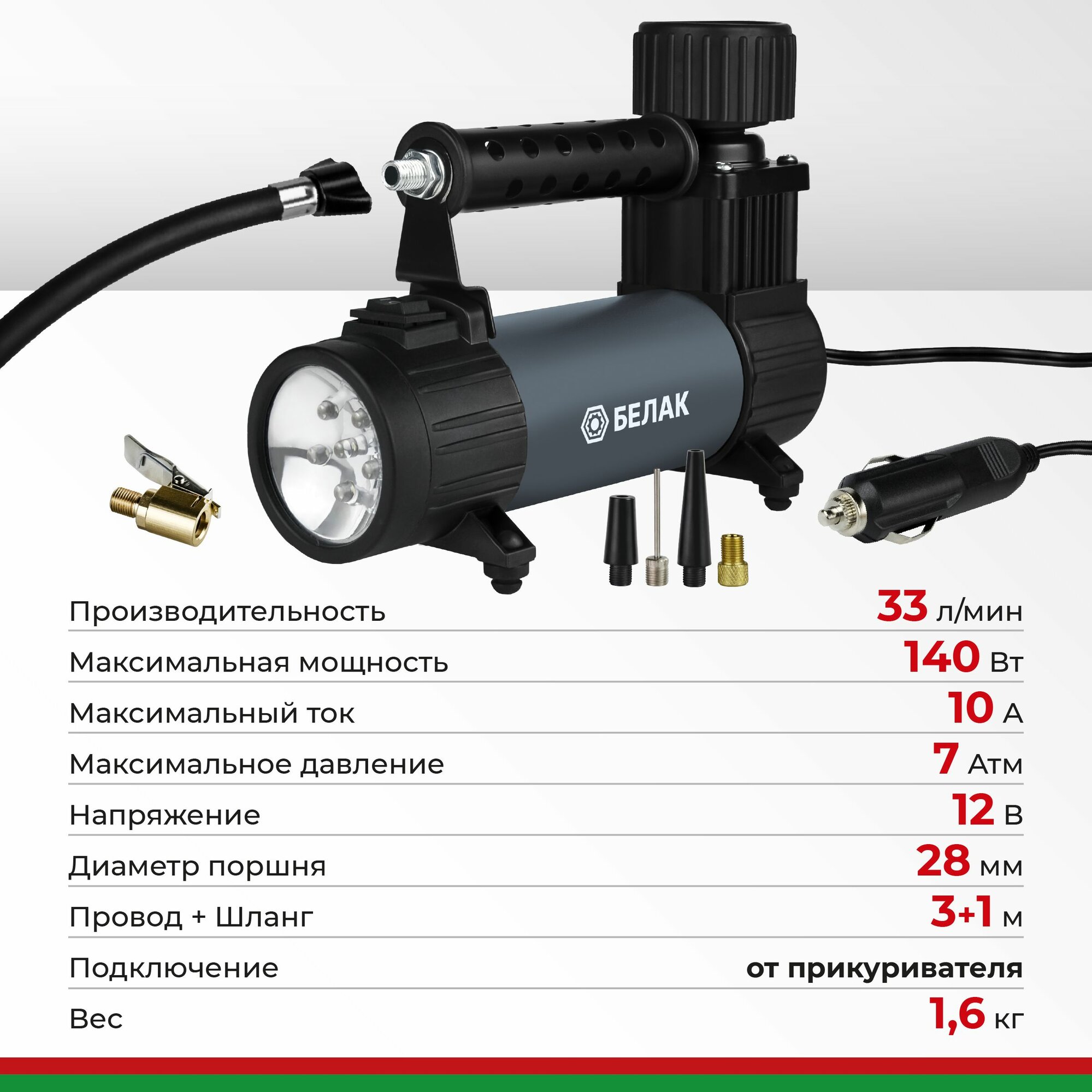 Компрессор автомобильный 33 л/мин, с фонарем, MX Серия, БелАК БАК.99367 интересное: