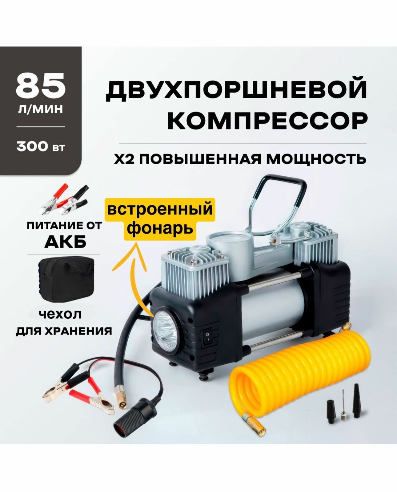 Компрессор автомобильный двухпоршневой от прикуривателя, насос автомобильный в чехле интересное: