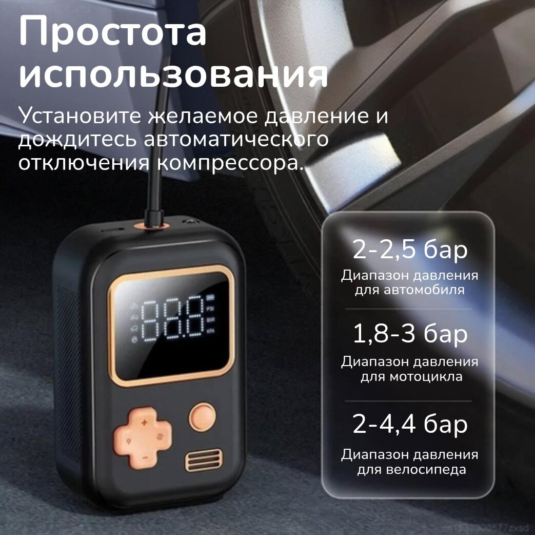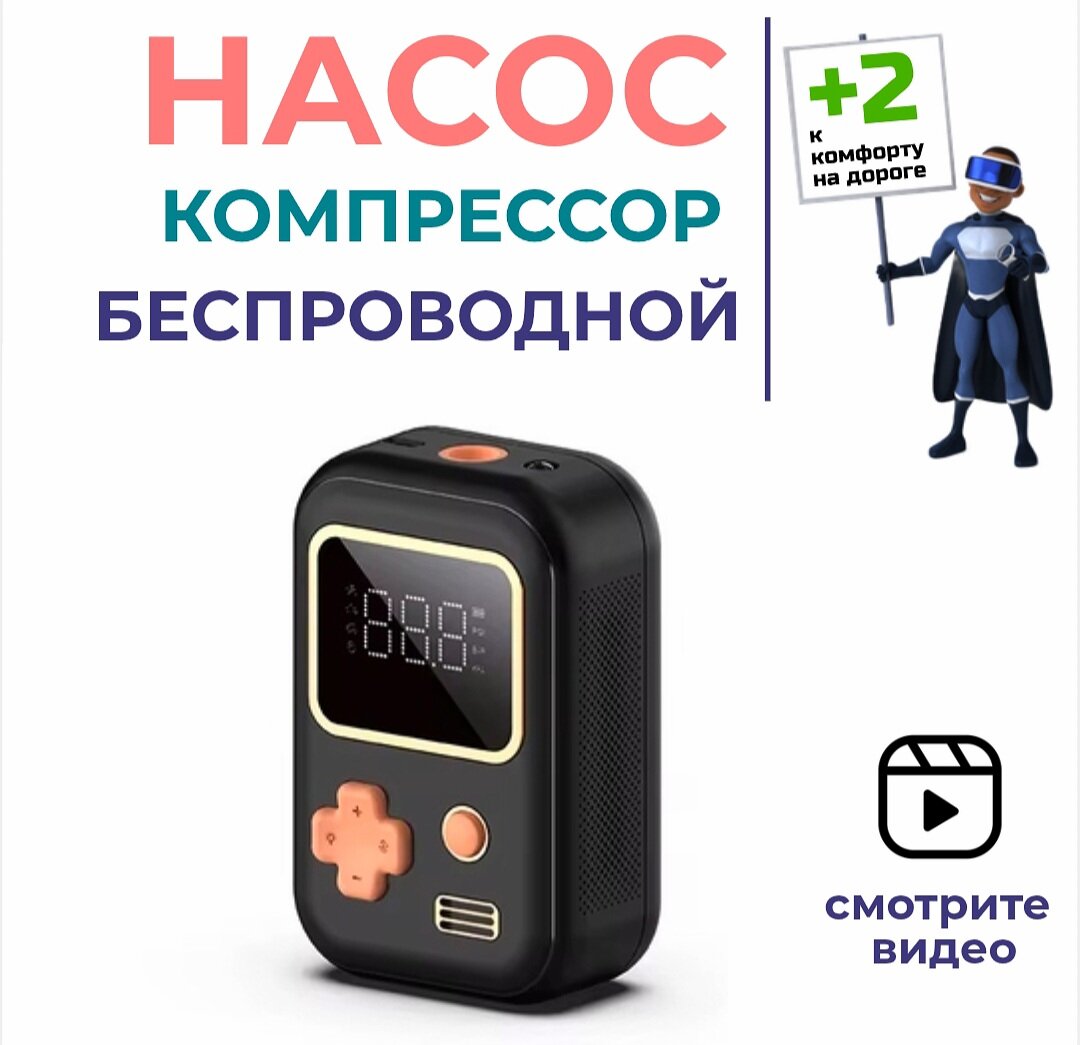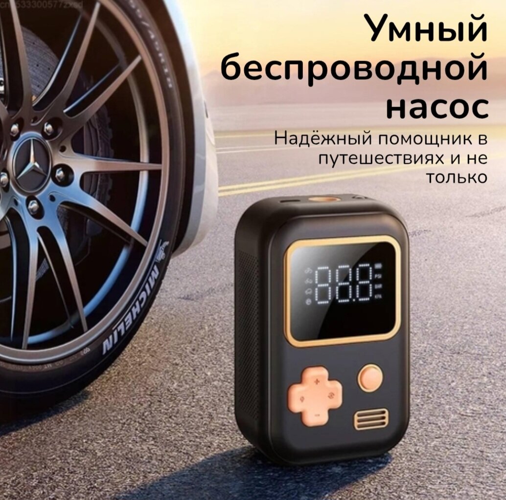 Насос компрессор автомобильный беспроводной 150PSI, с игровой кнопкой интересное: