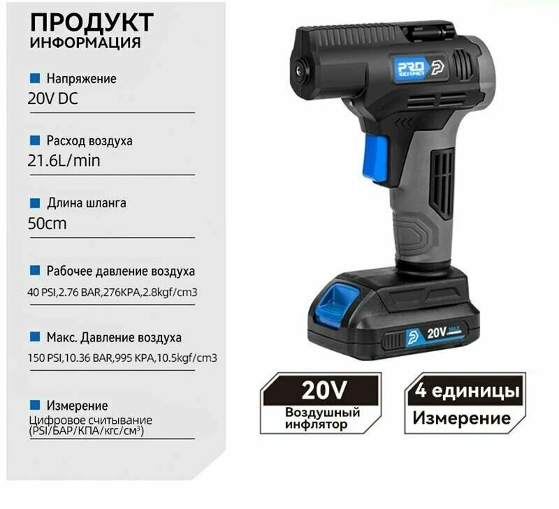 Электрический воздушный компрессор PROSTORMER, без АКБ в комплекте интересное:
