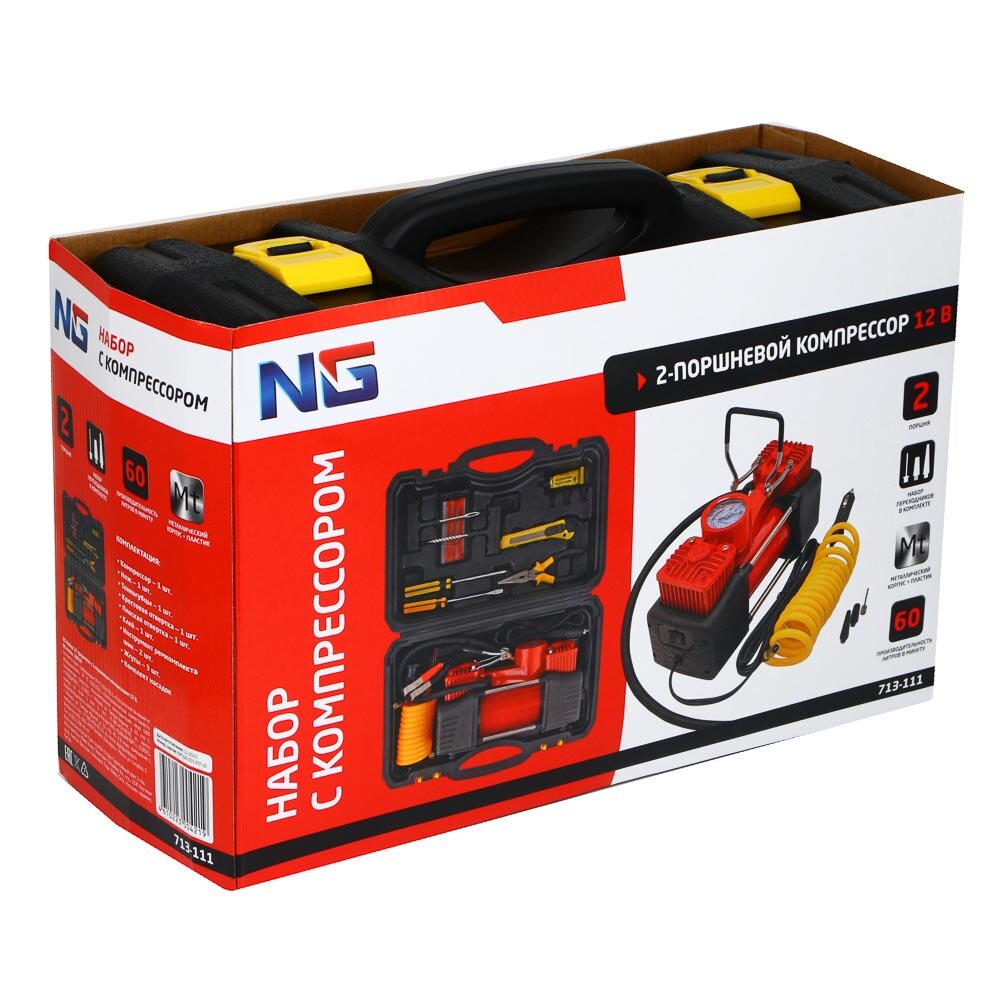 NG Набор 12 предметов с 2-х поршневым компрессором 12В, 60л/мин, 180Вт интересное: